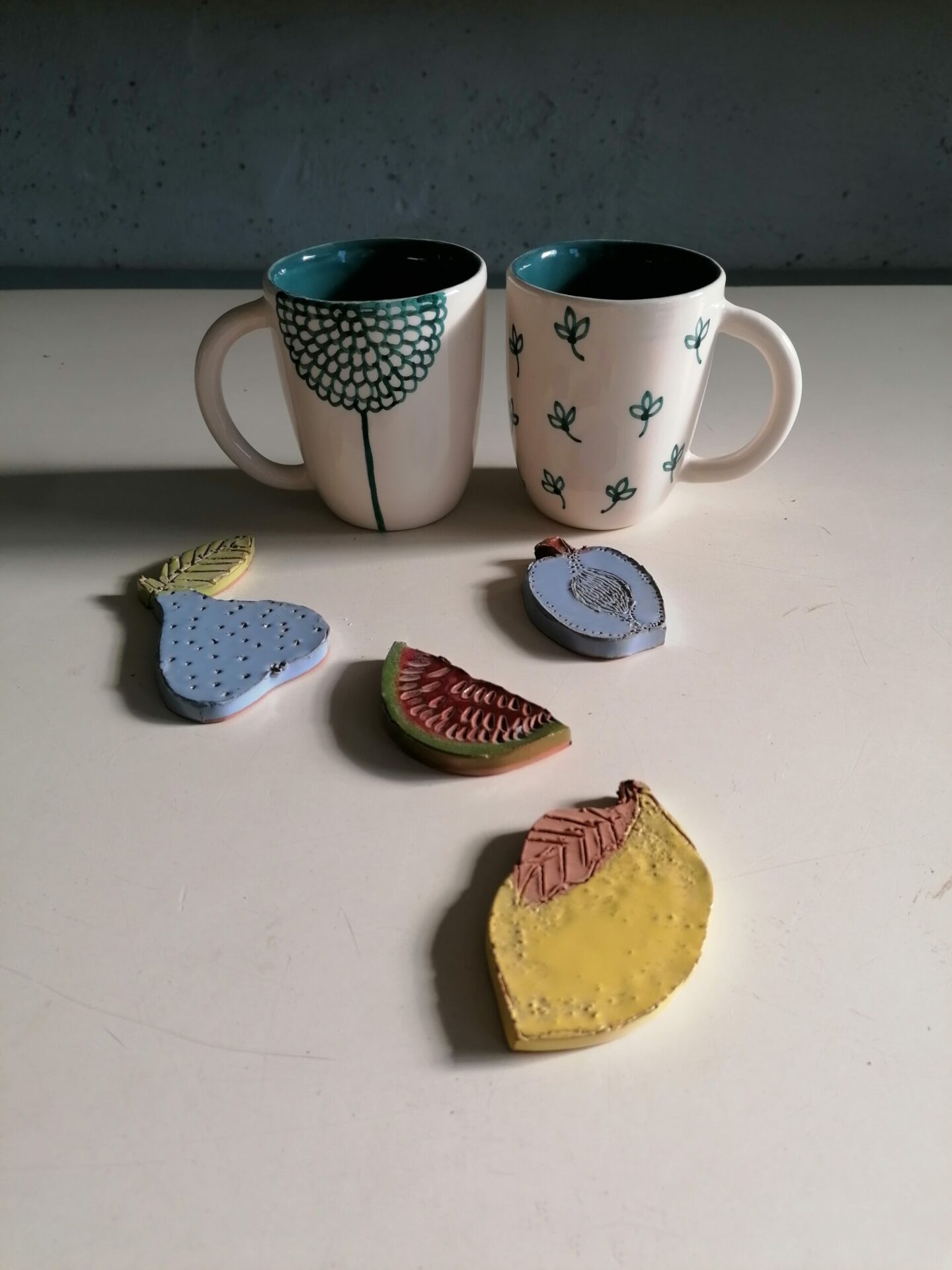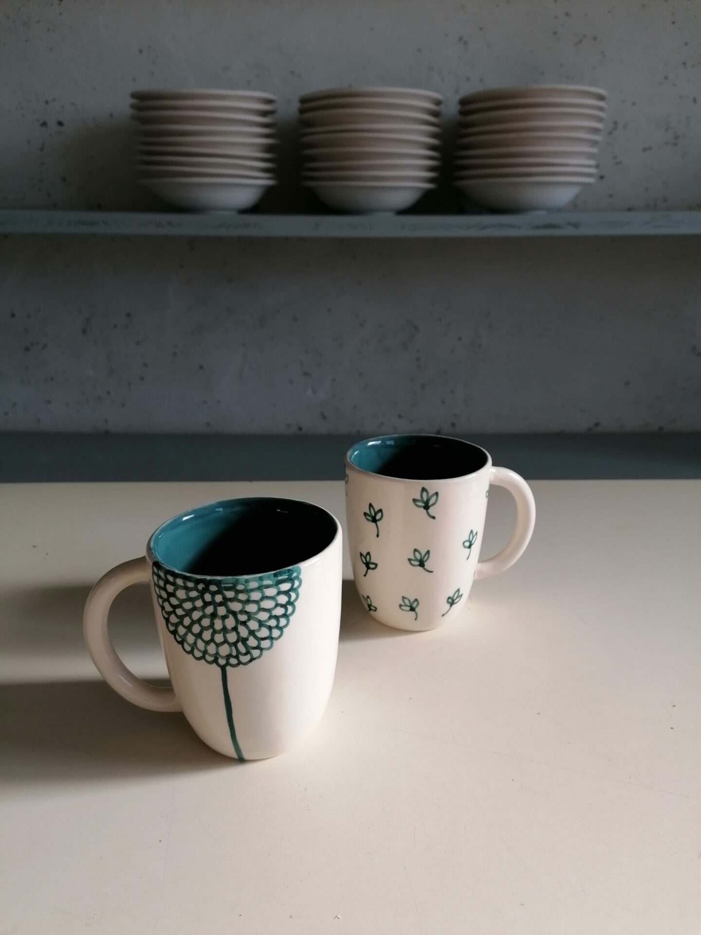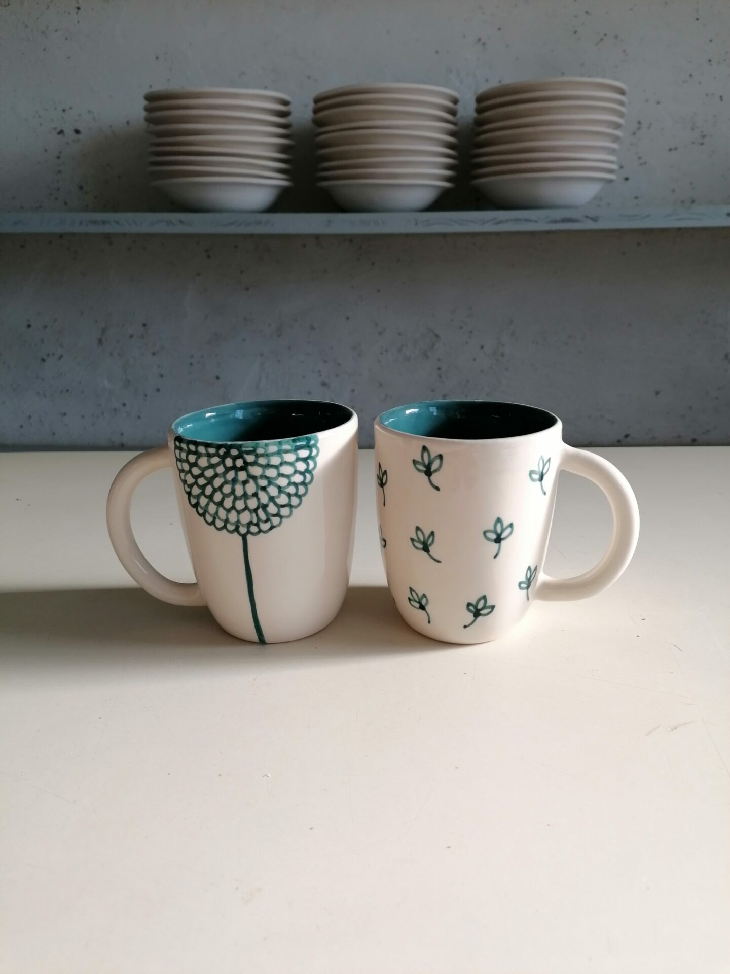 - Tazza in ceramica realizzata e decorata a mano, in argilla bianca