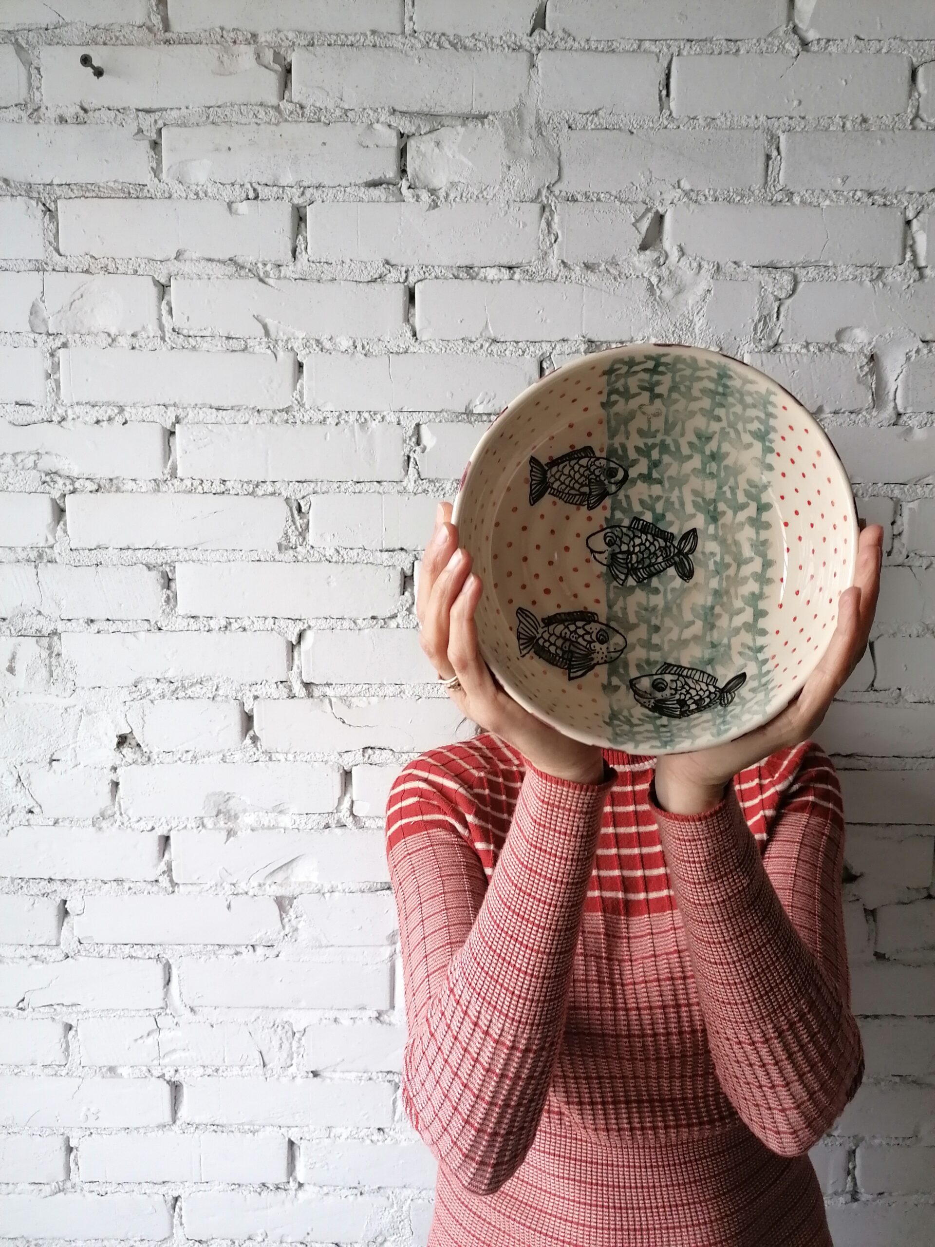 Ceramic bowl handmade and hand-decorated, in white clay