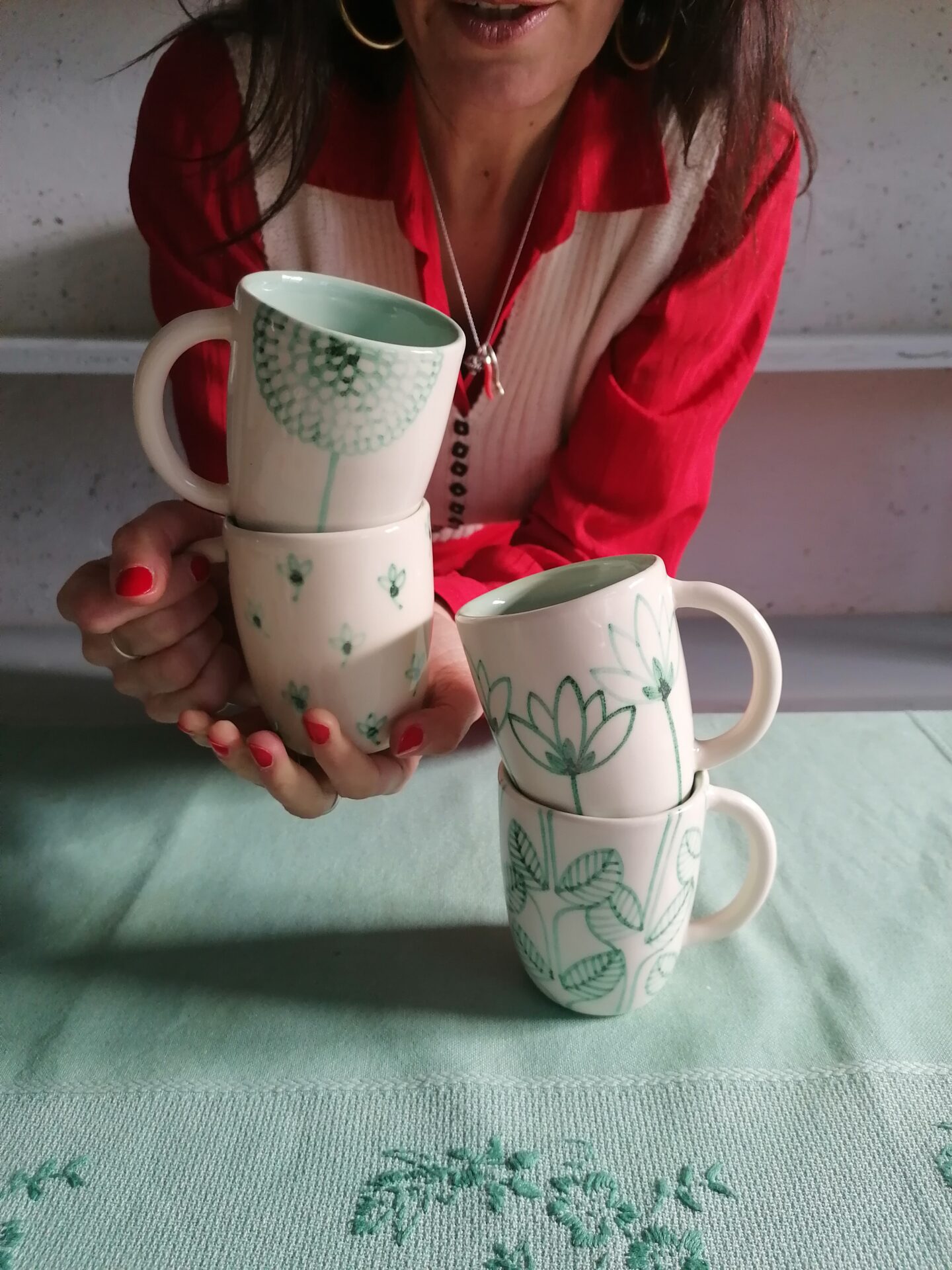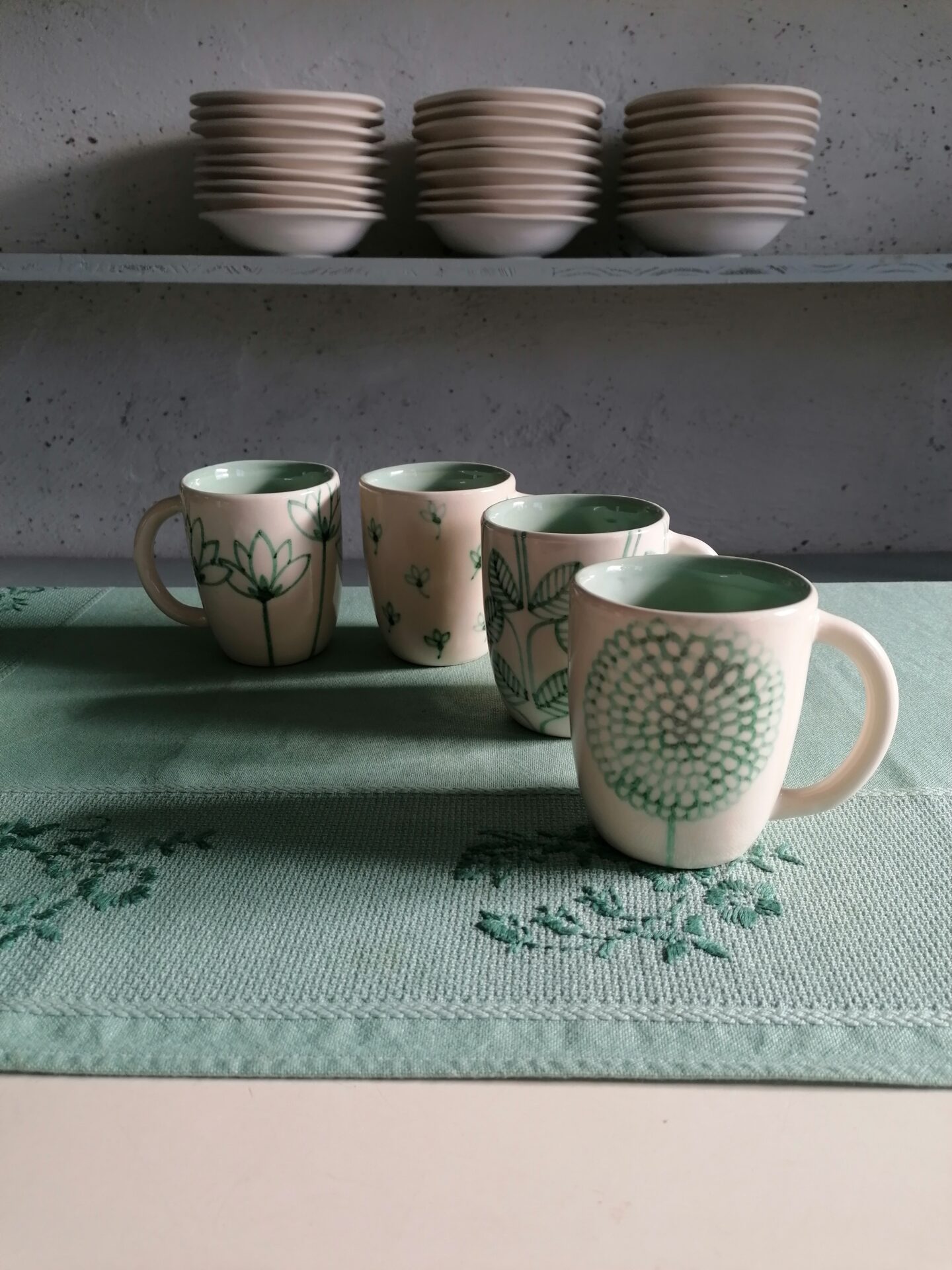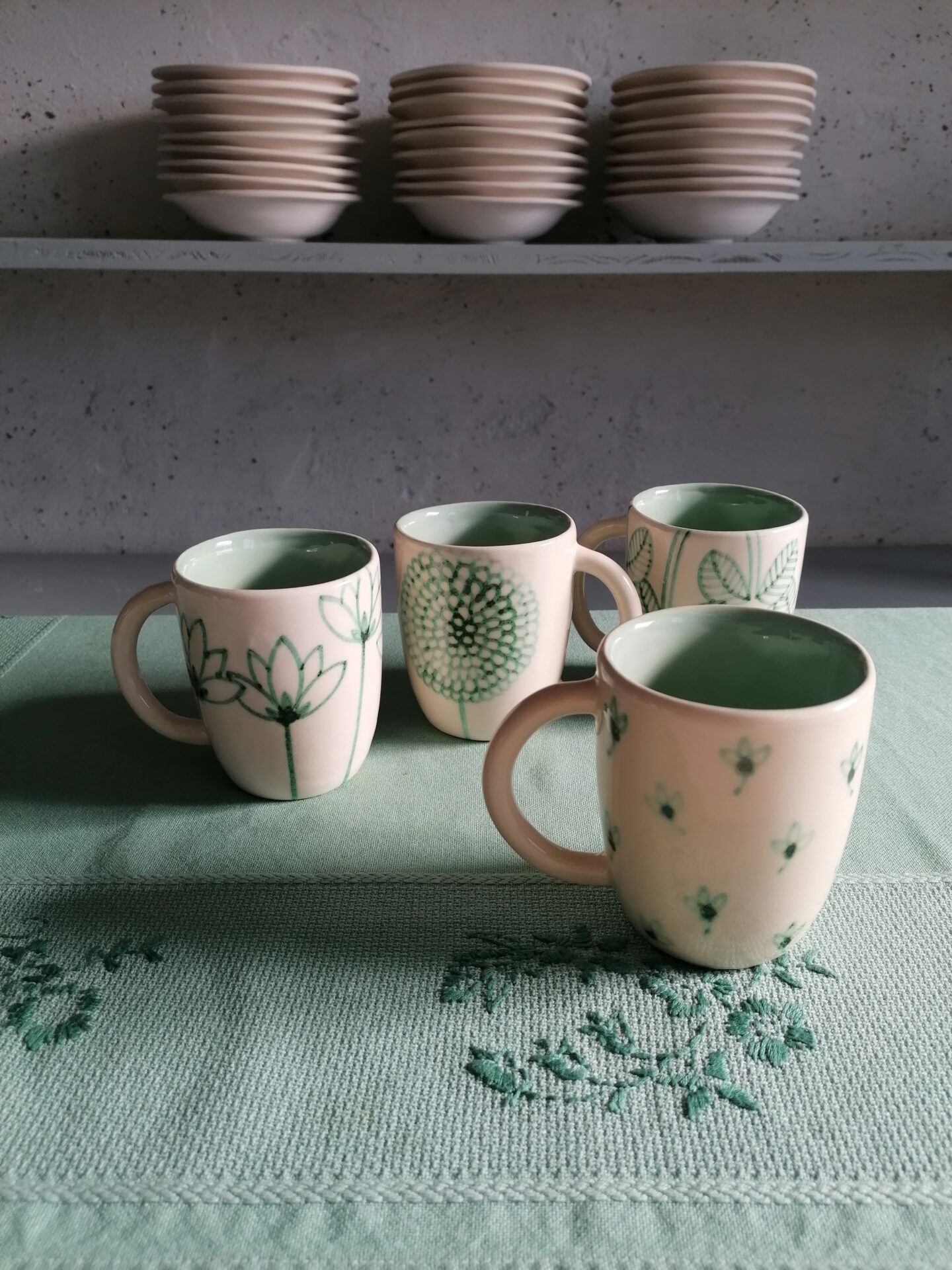 完全手作り・手描きの朝食用カップ。