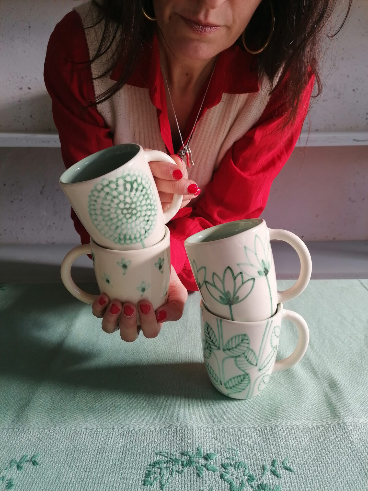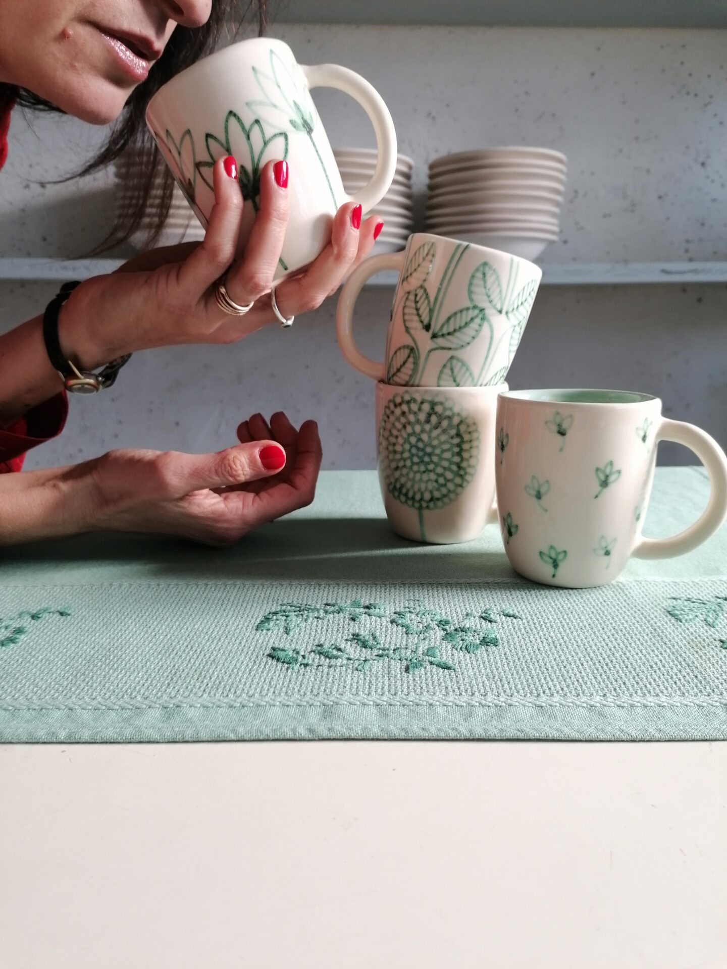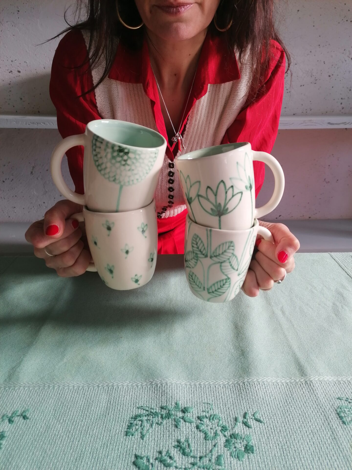 完全手作り・手描きの朝食用カップ。