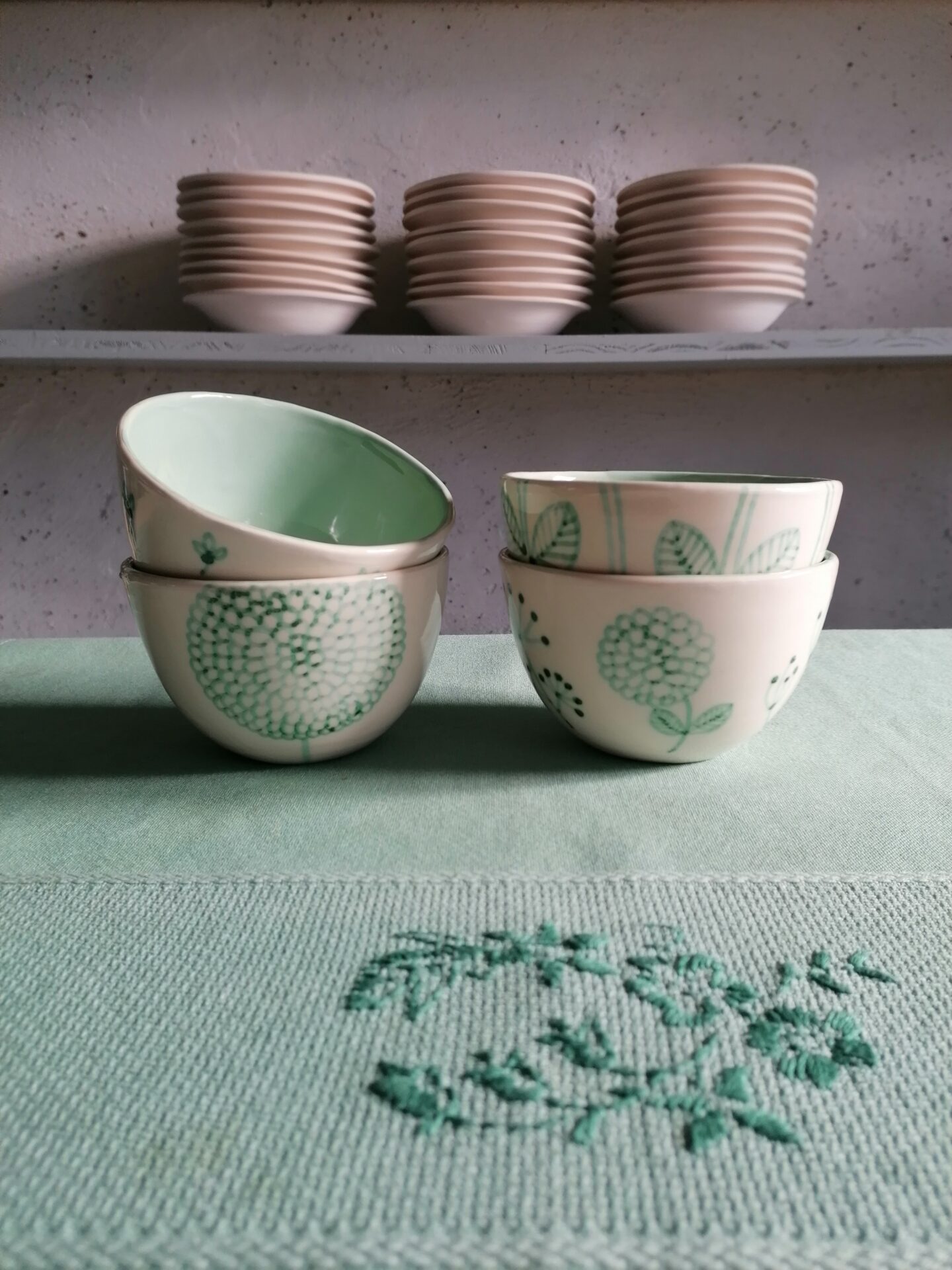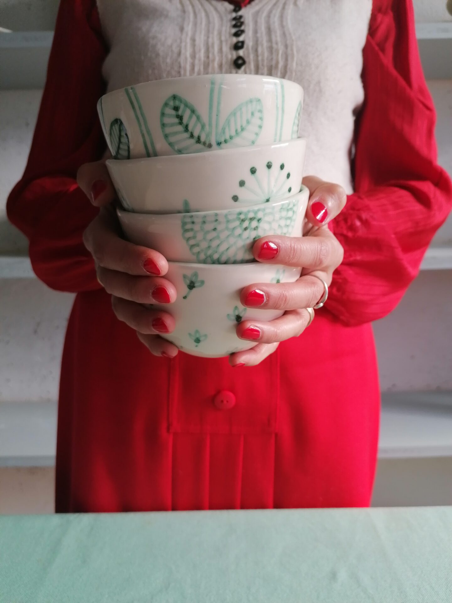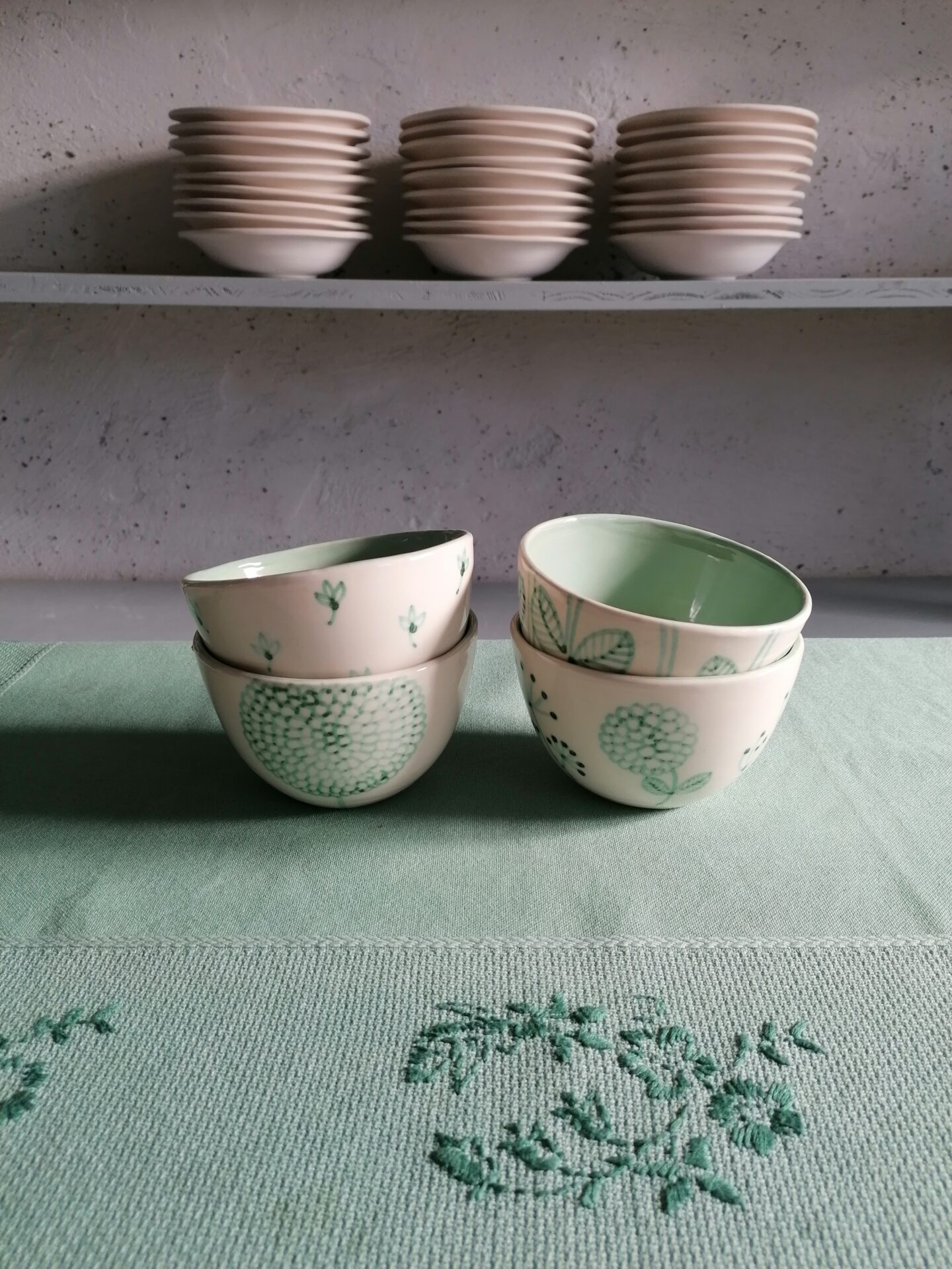 • 白粘土製、手作り・手描きのセラミック小鉢