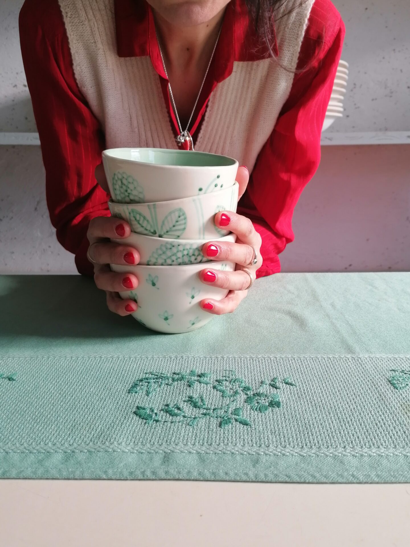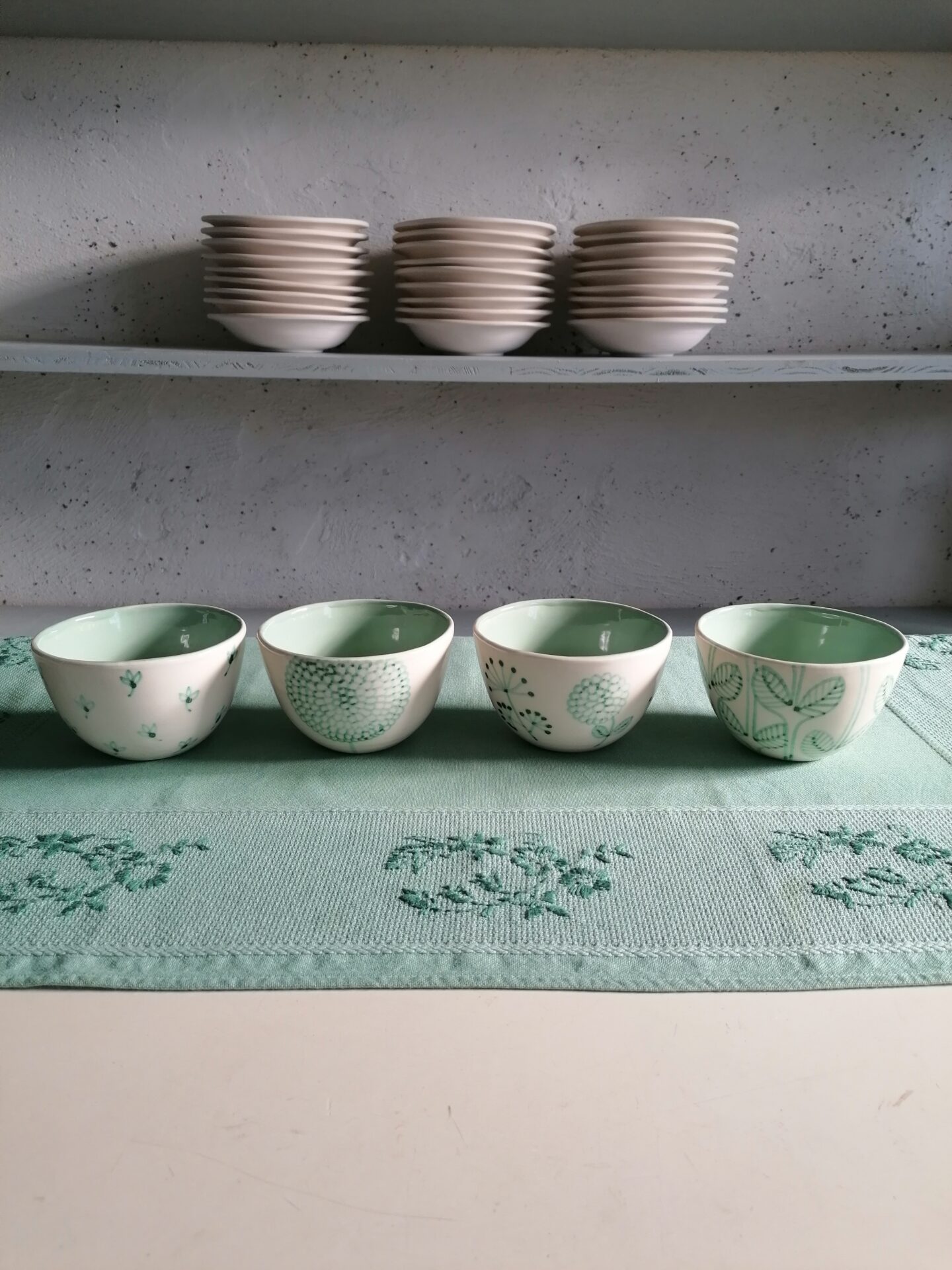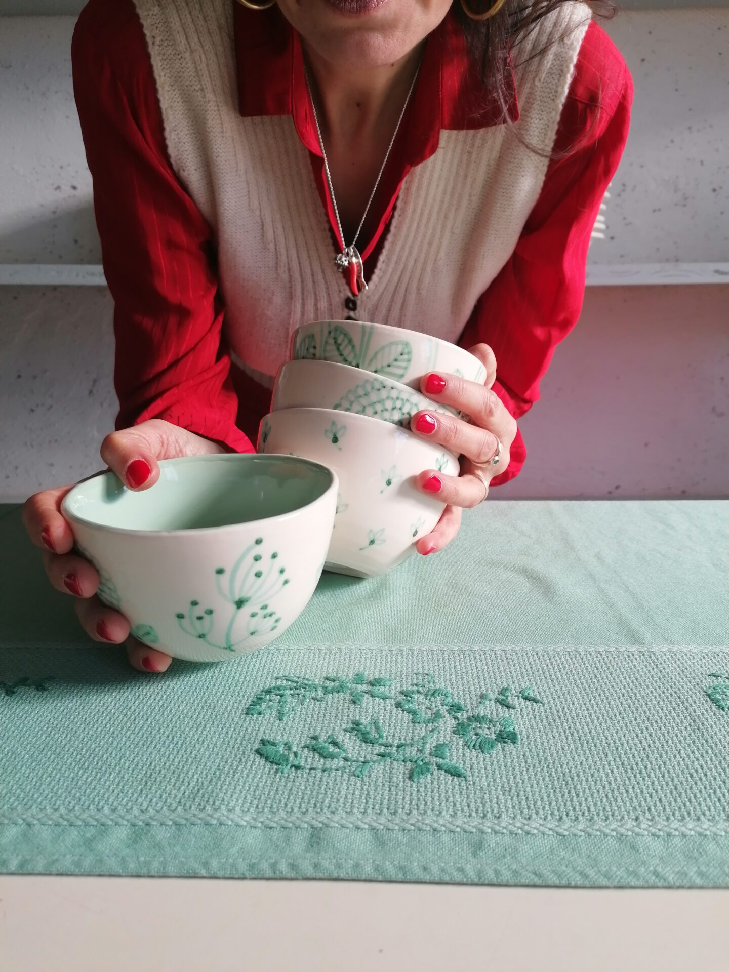 • 白粘土製、手作り・手描きのセラミック小鉢