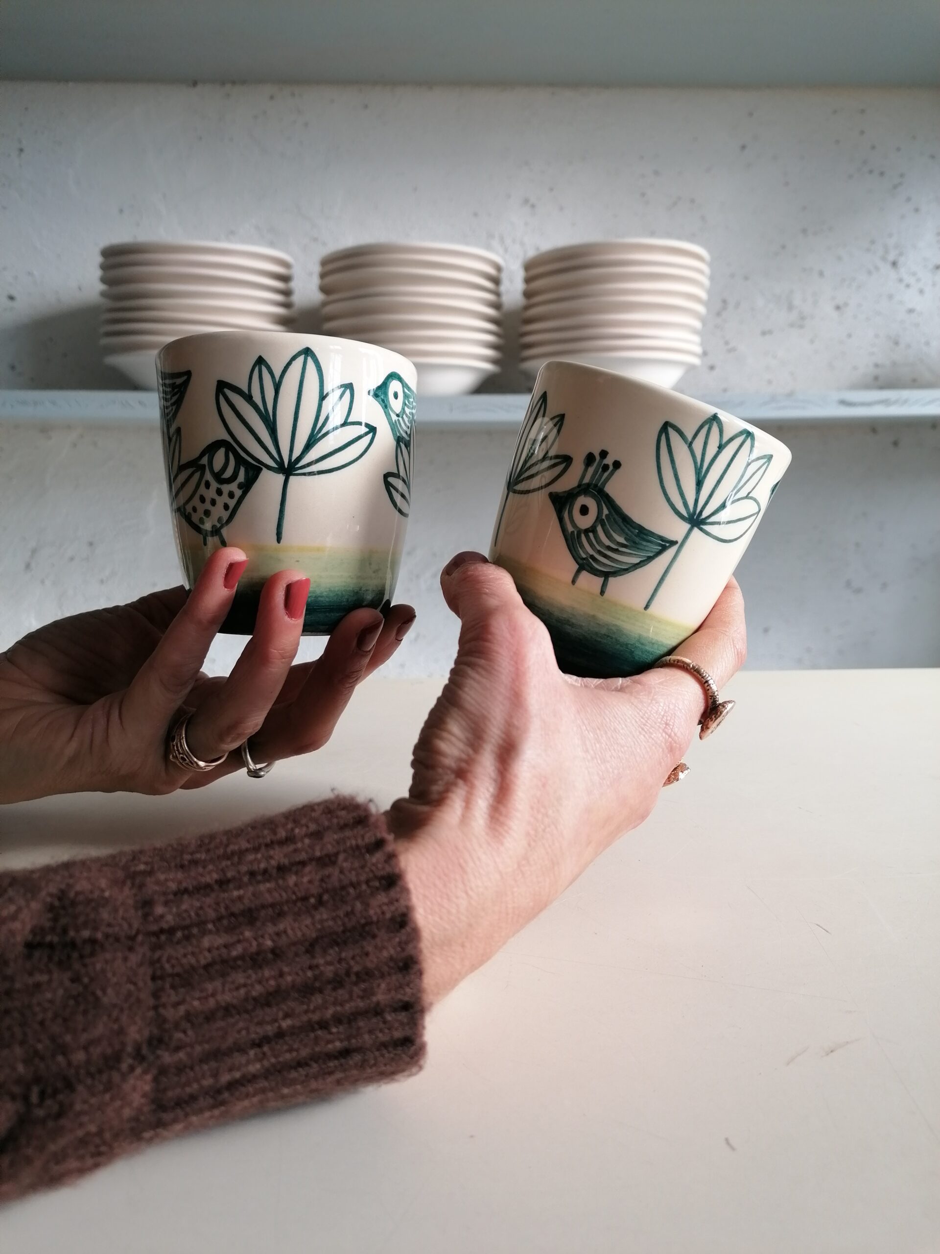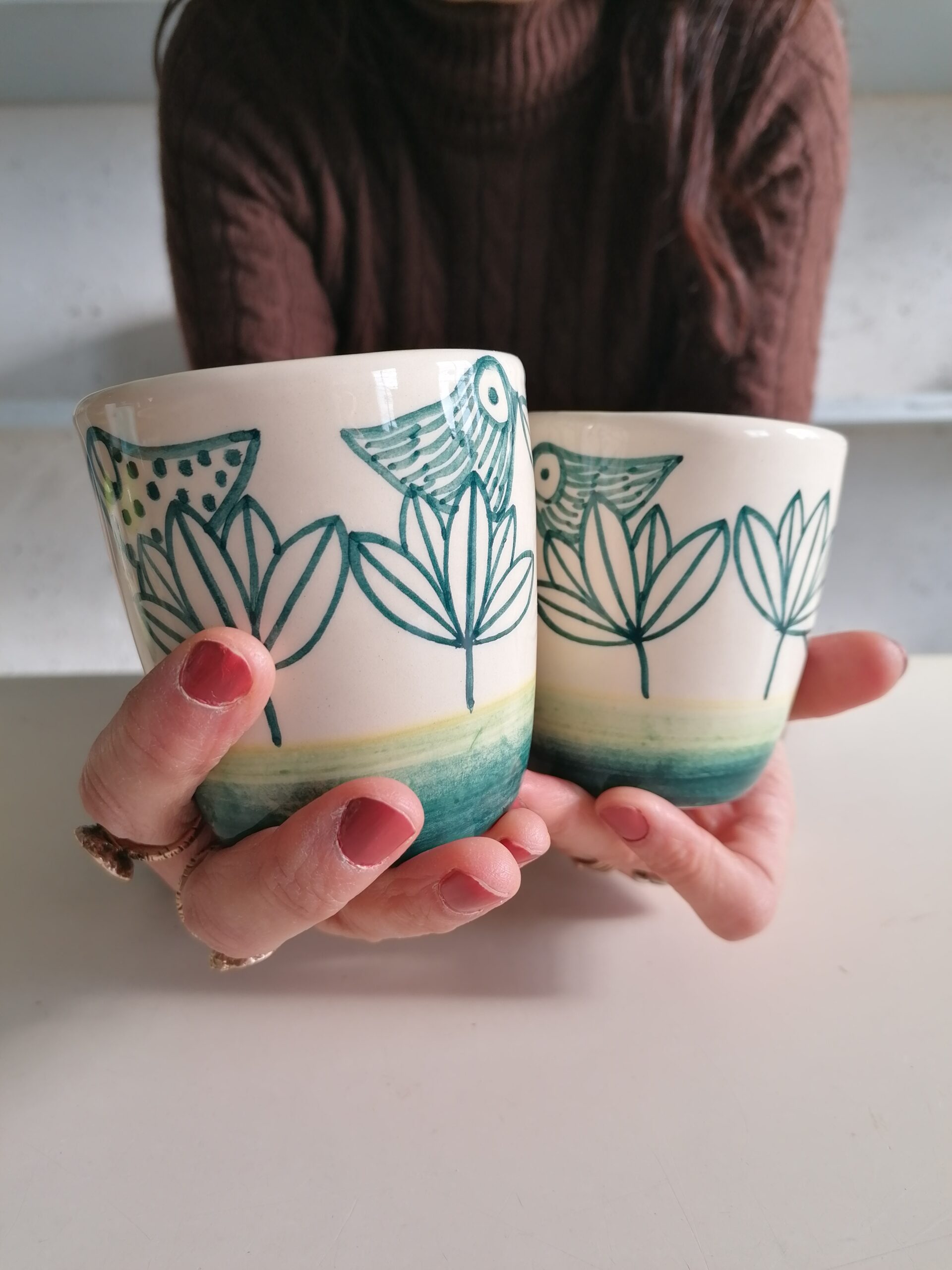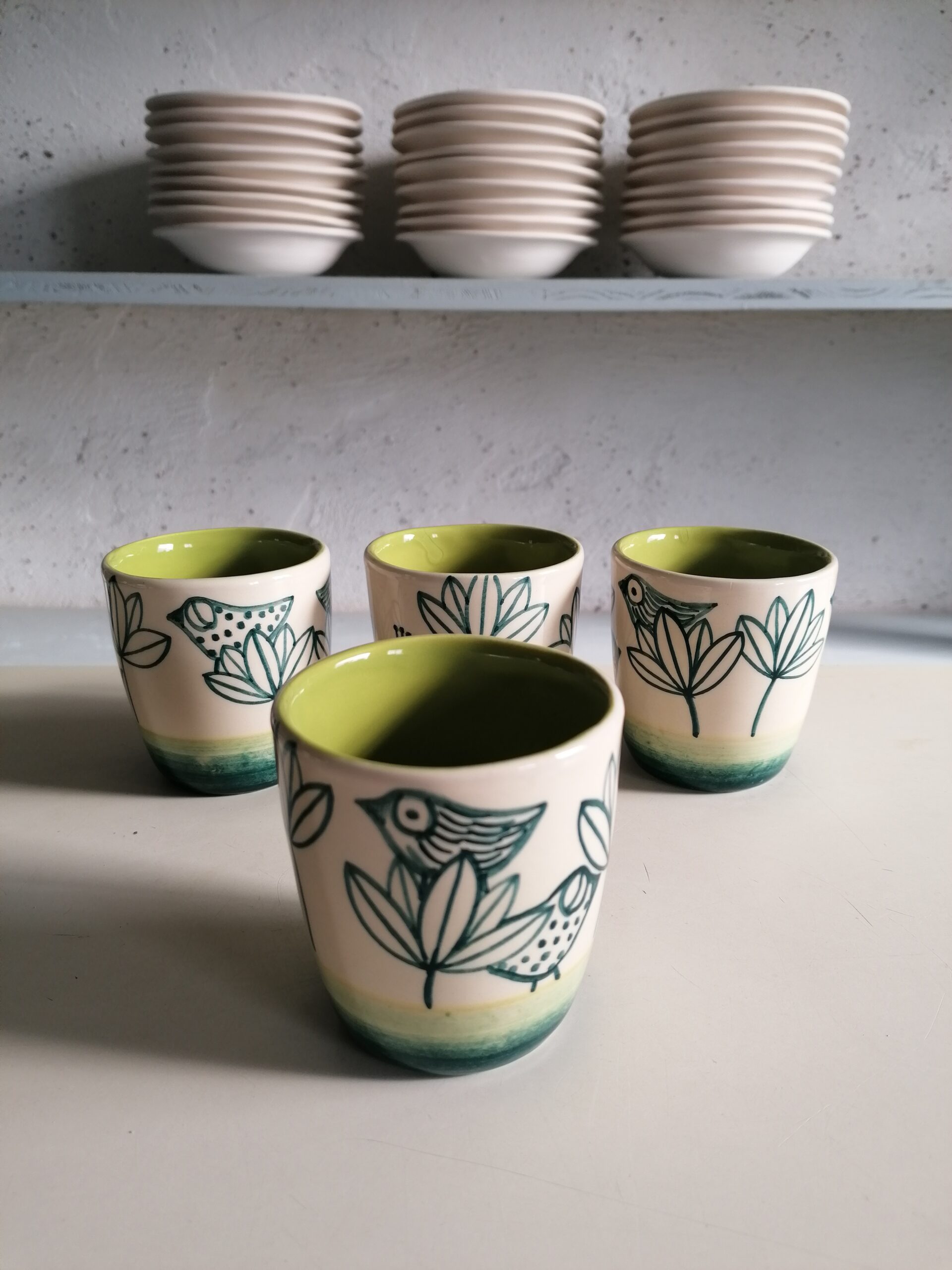 • 白粘土製、手作り・手描きのセラミックグラス