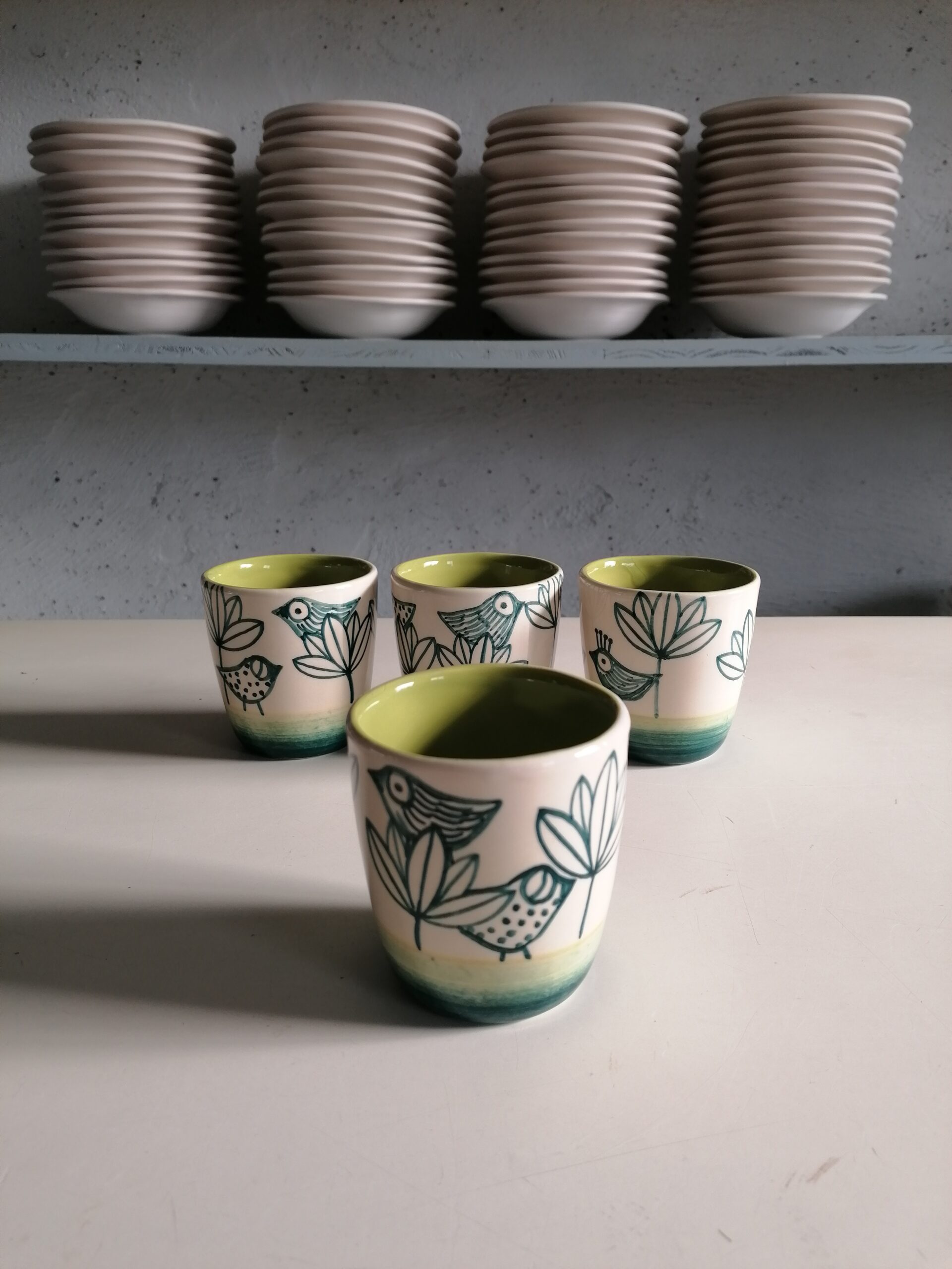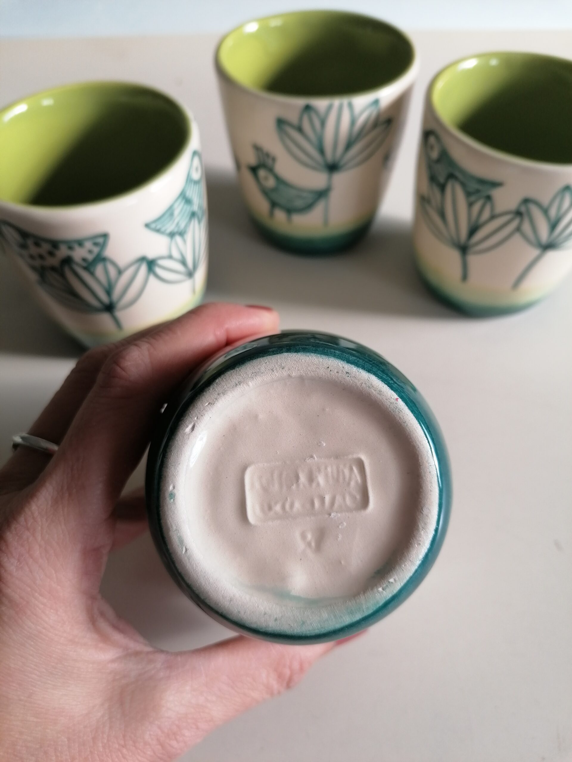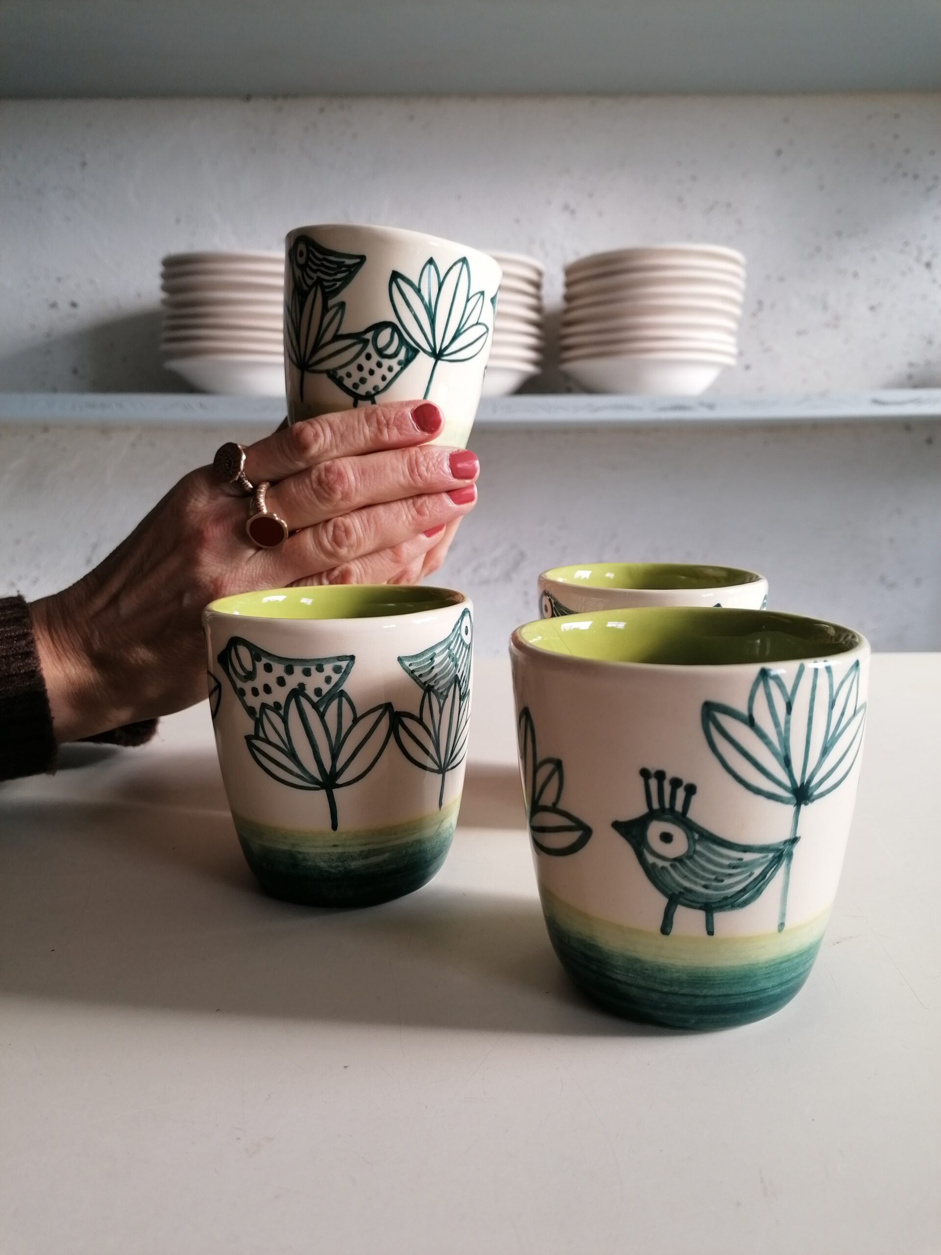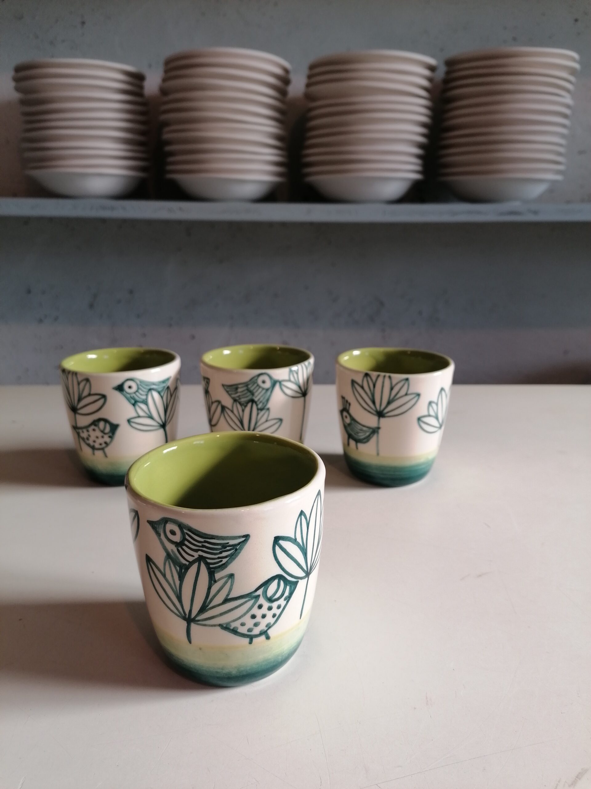 • 白粘土製、手作り・手描きのセラミックグラス
