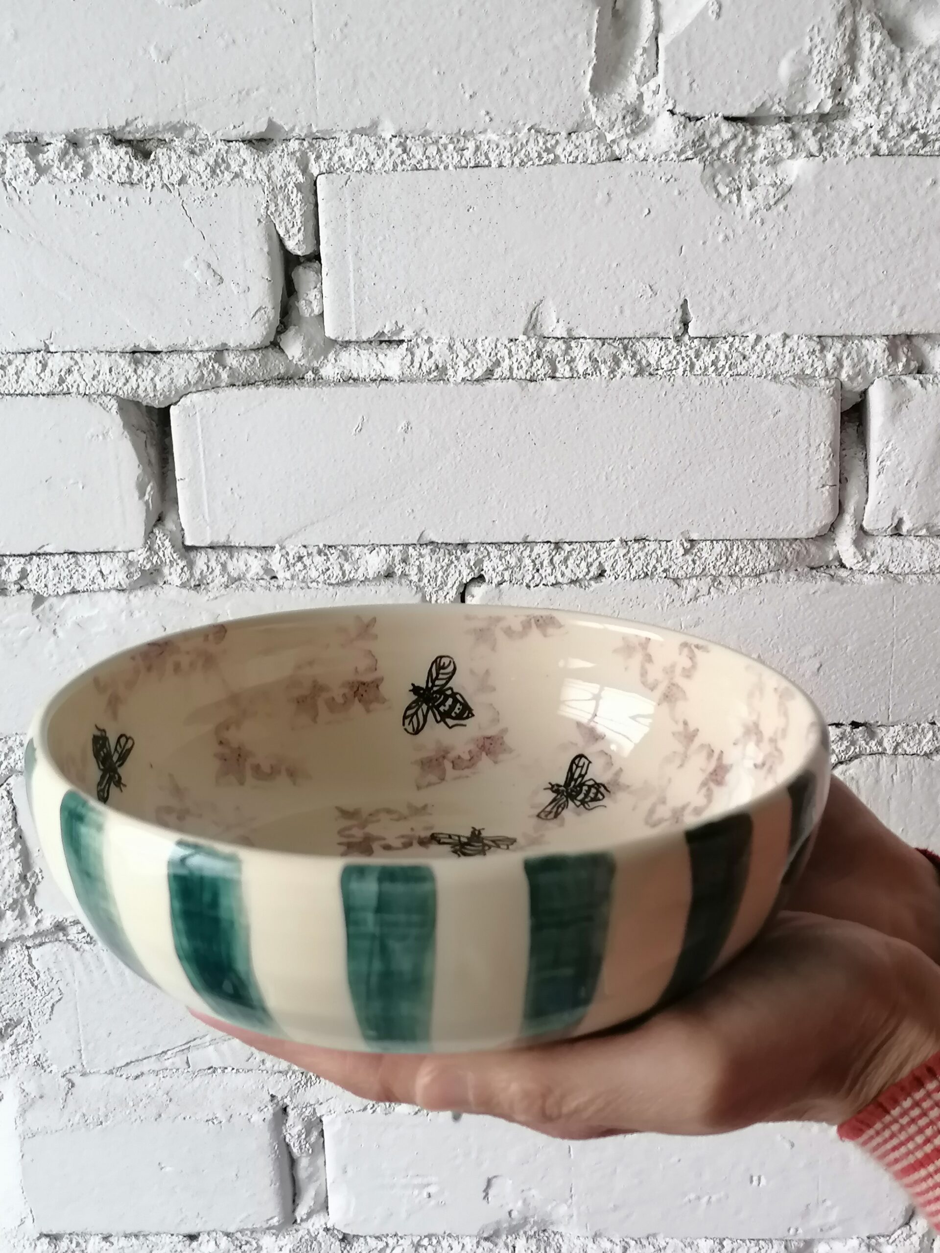 • Ciotola in ceramica realizzata e decorata a mano, in argilla bianca