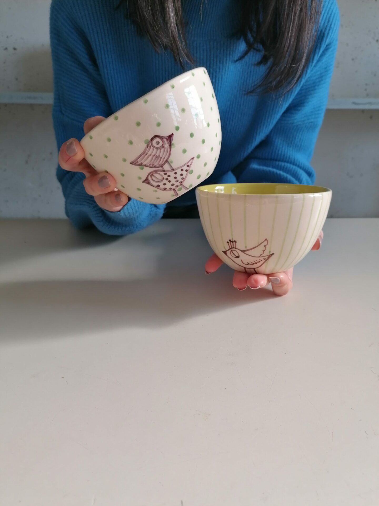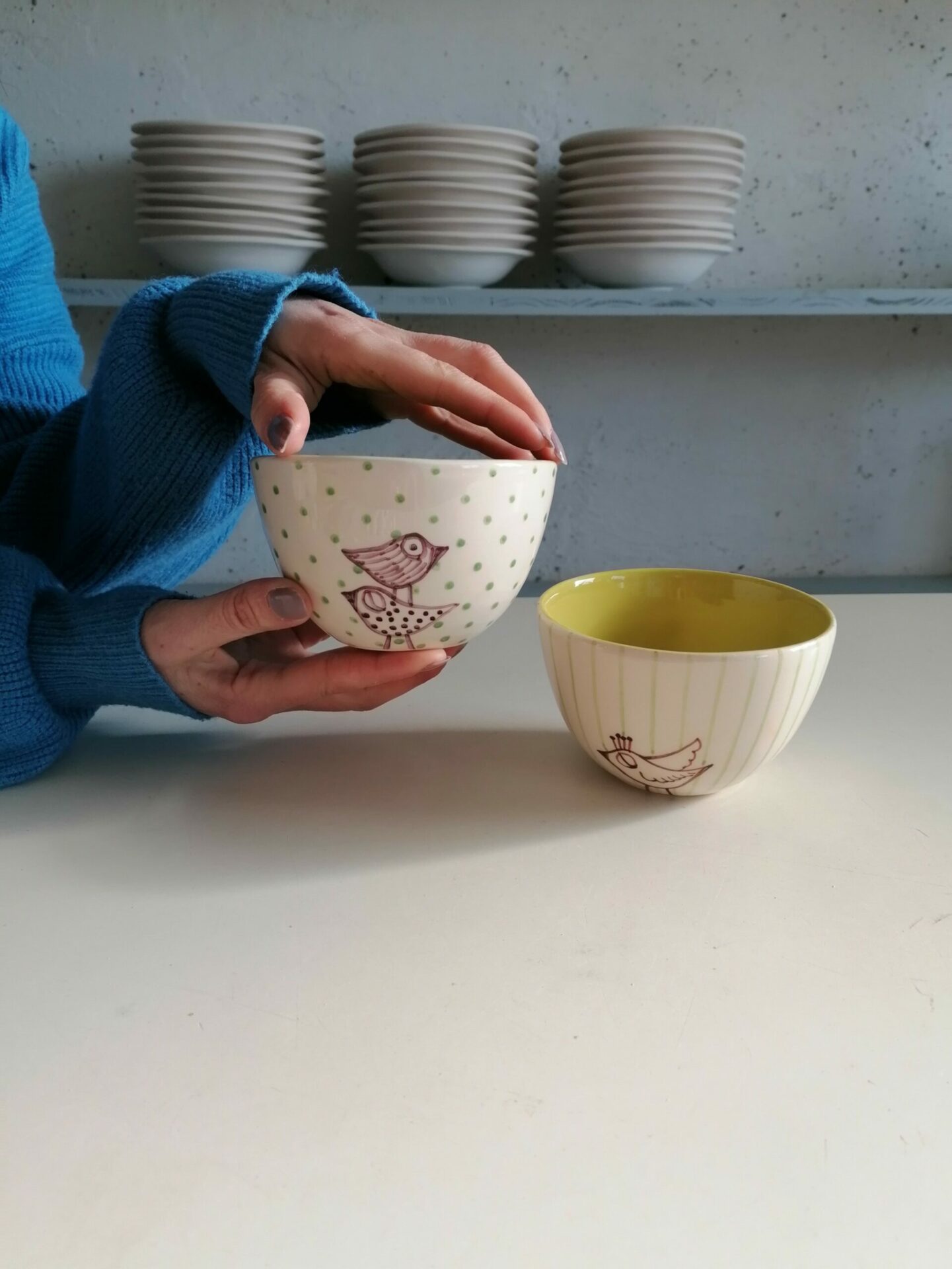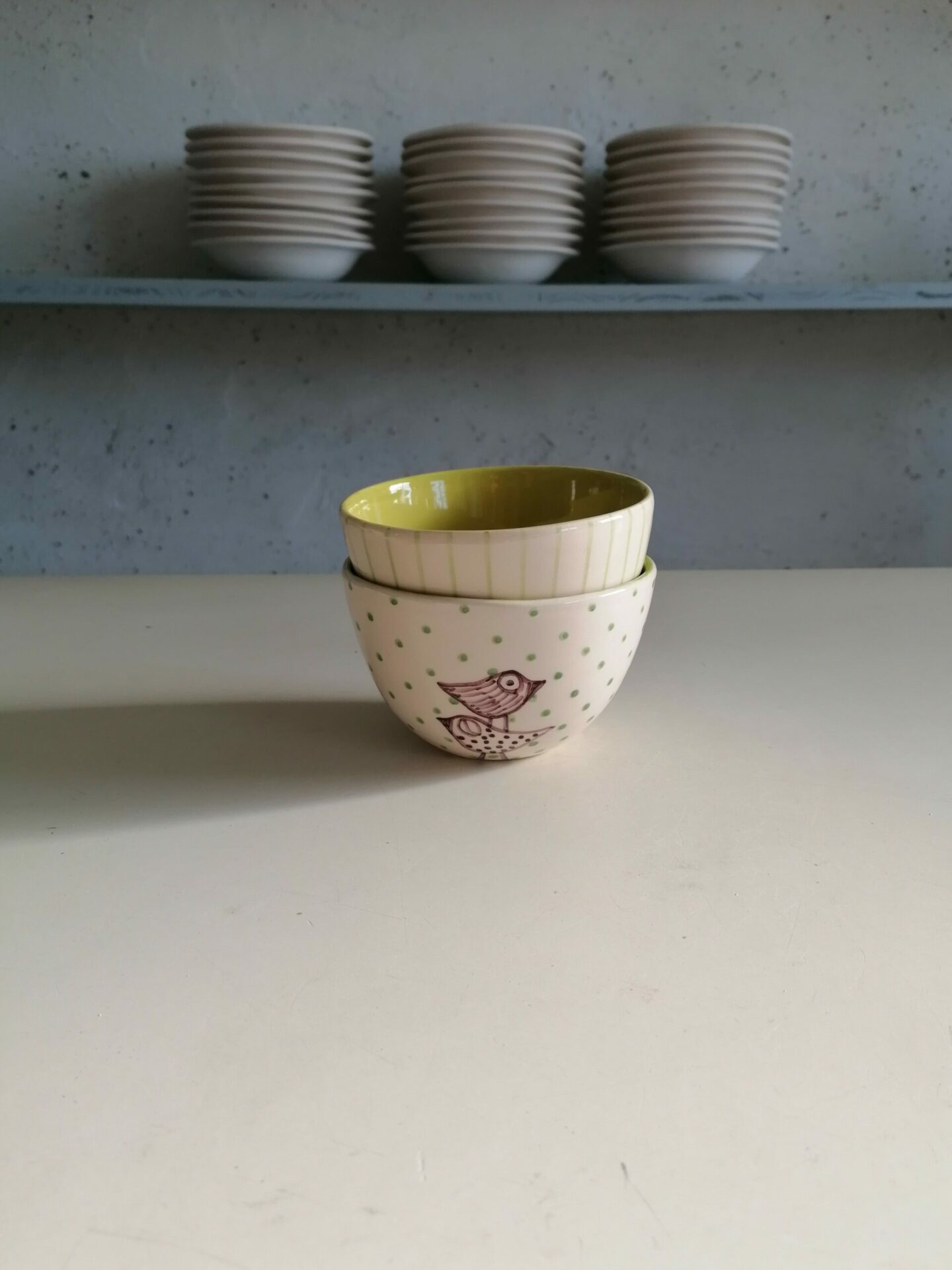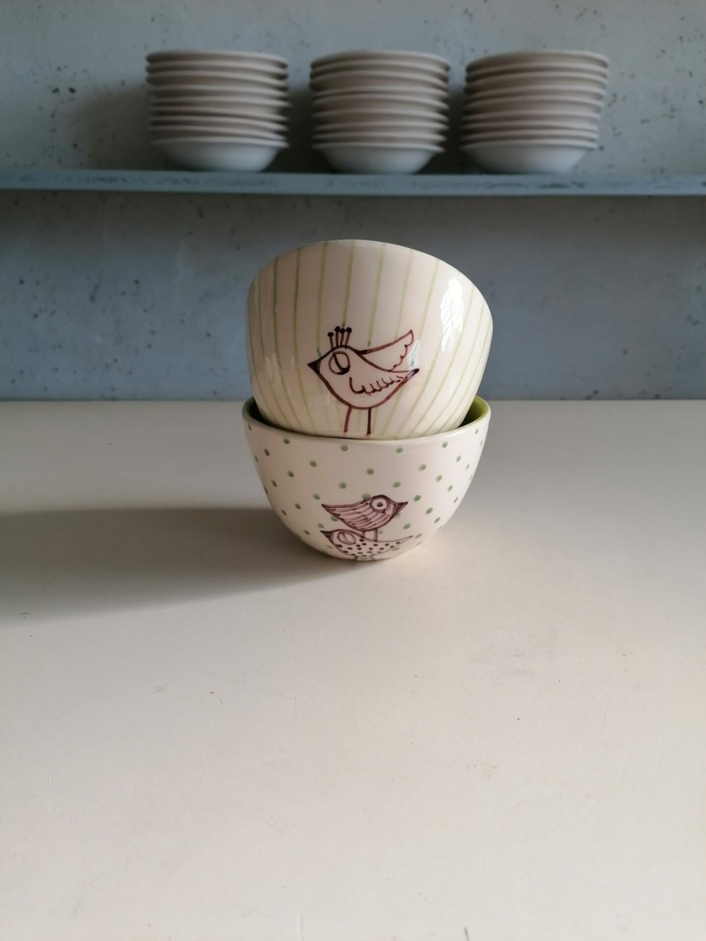 Ciotolina in ceramica realizzata e decorata a mano, in argilla bianca