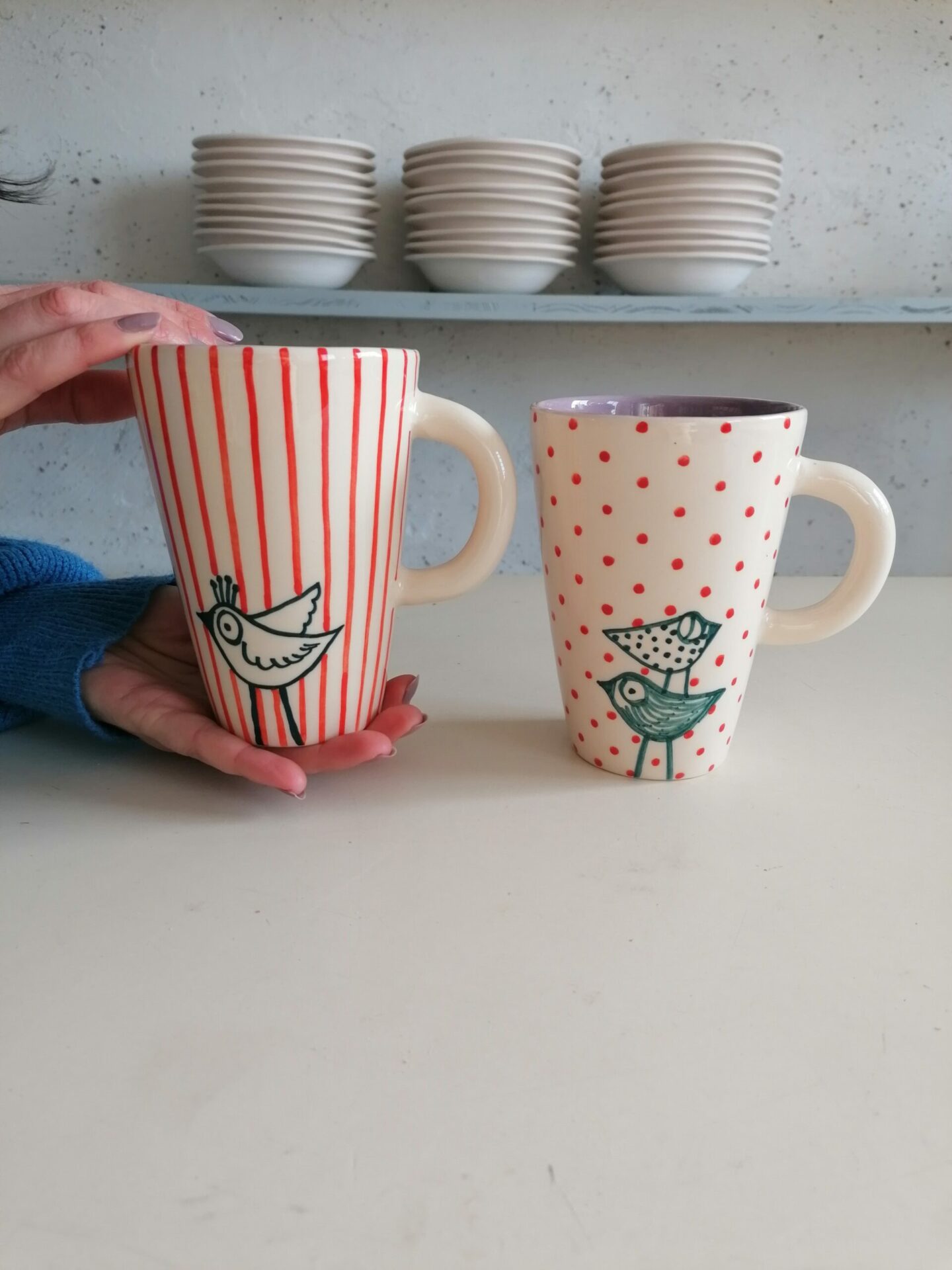 Mug ideale per colazione interamente prodotta e decorata a mano.