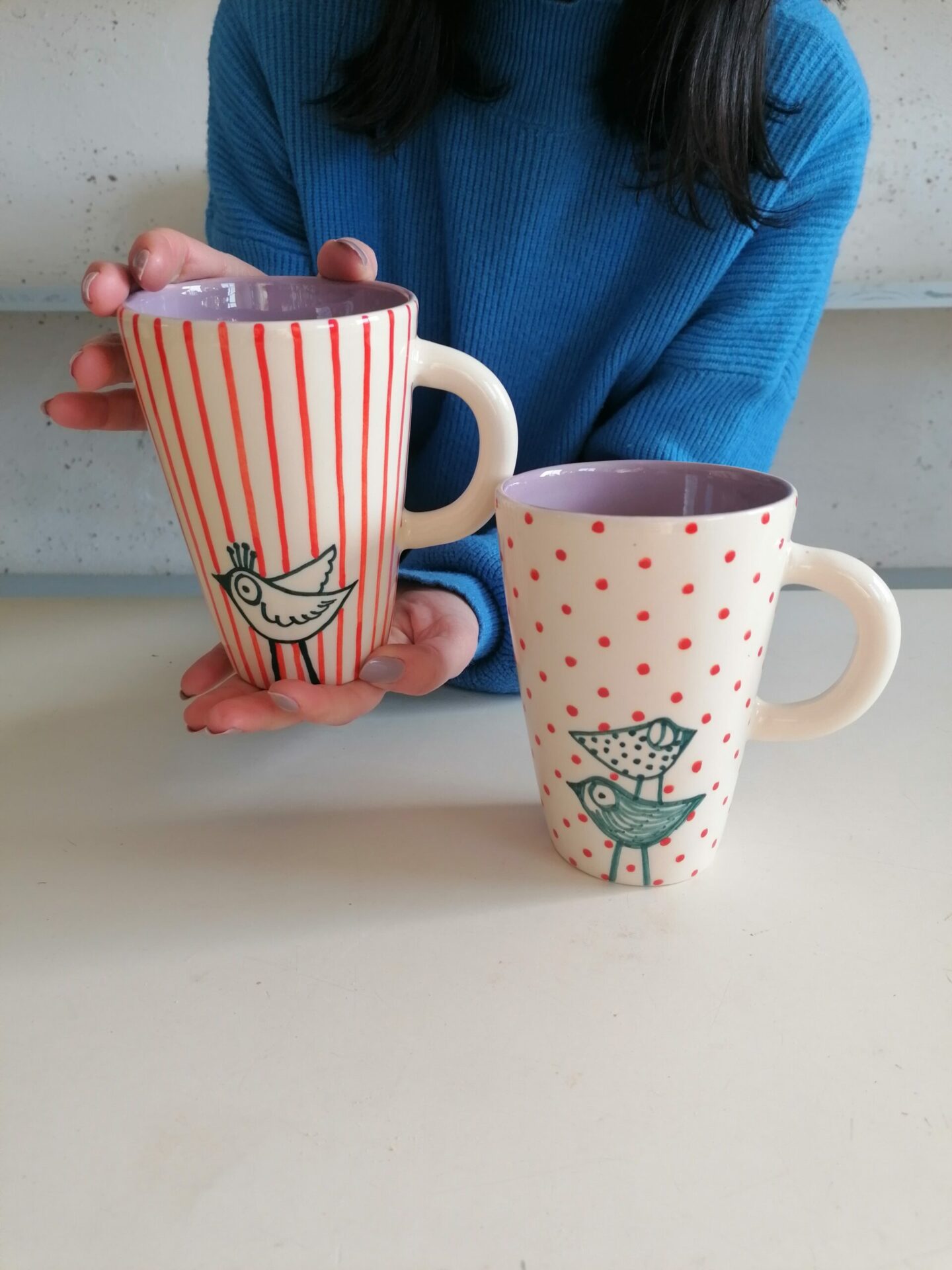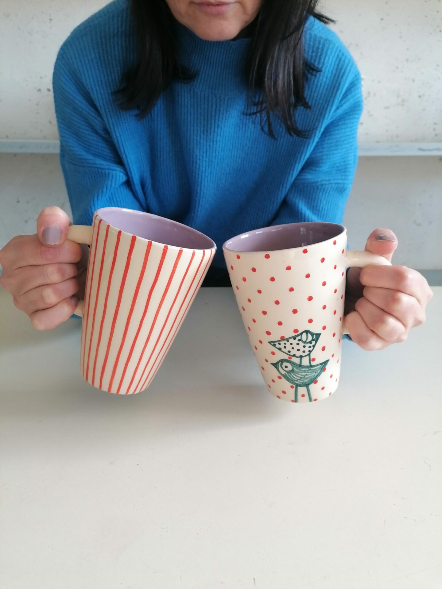 Tazza in ceramica realizzata e decorata a mano, in argilla bianca
