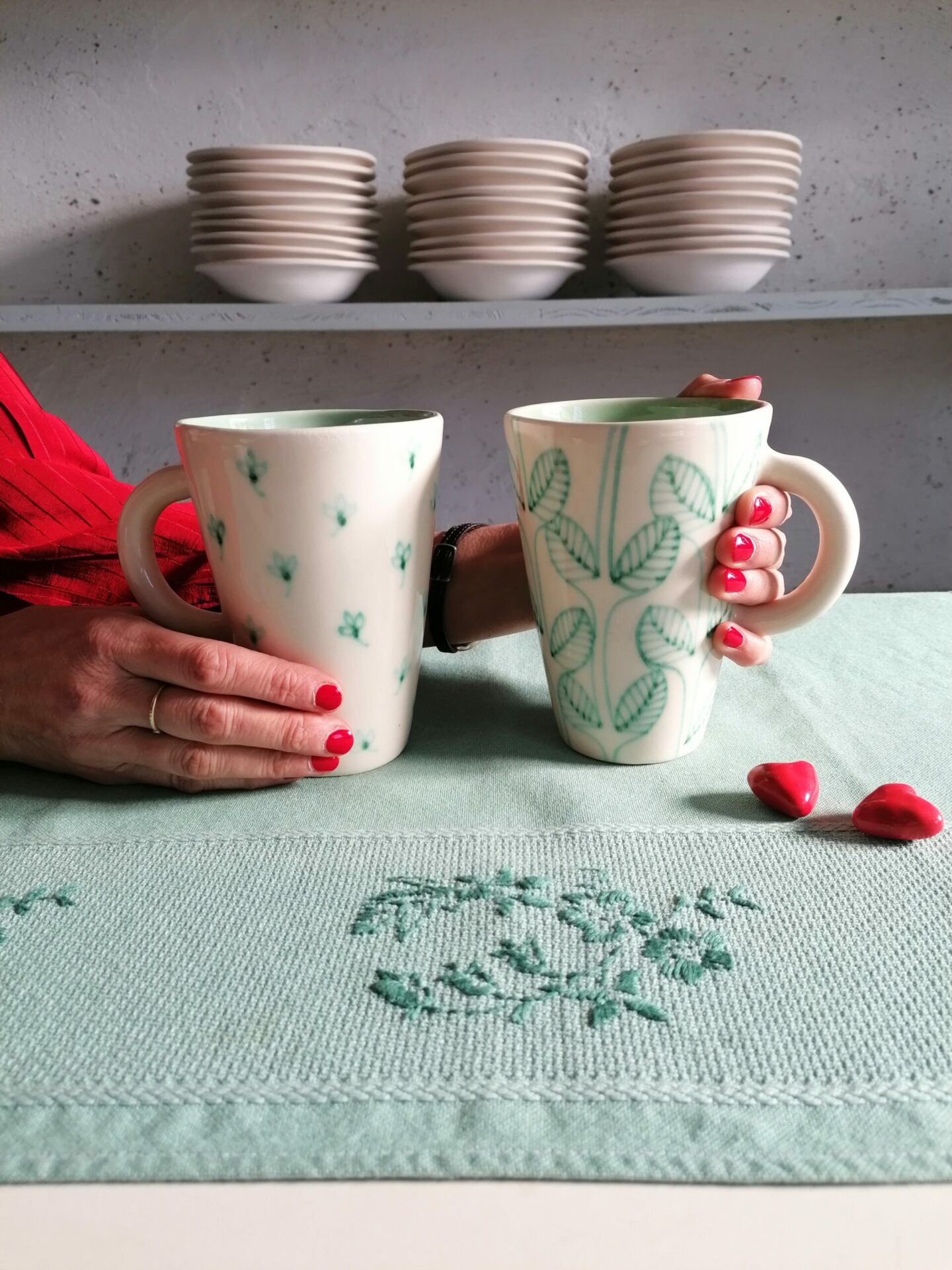 • Tazza in ceramica realizzata e decorata a mano, in argilla bianca