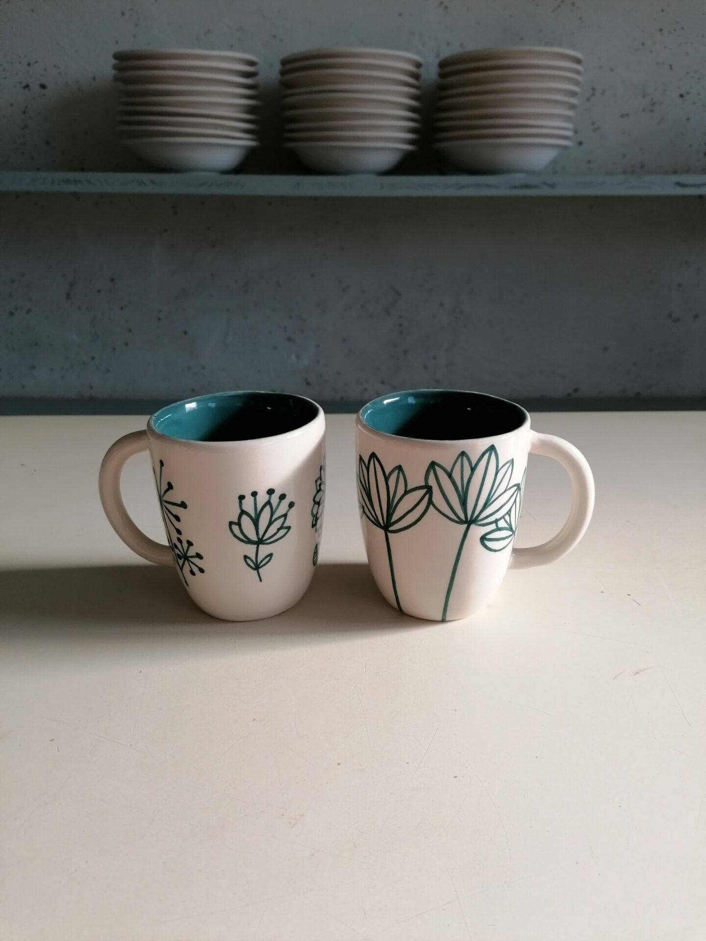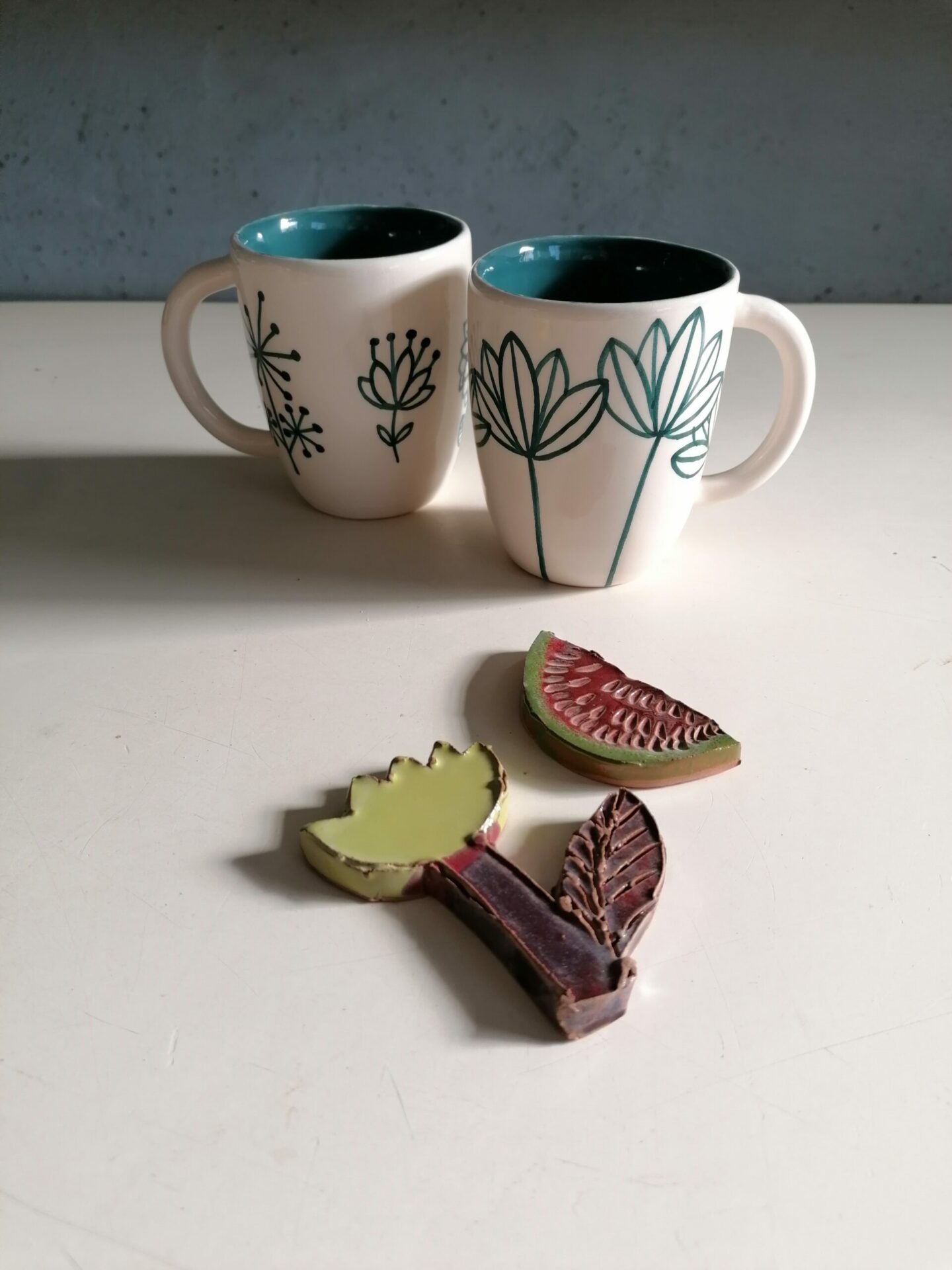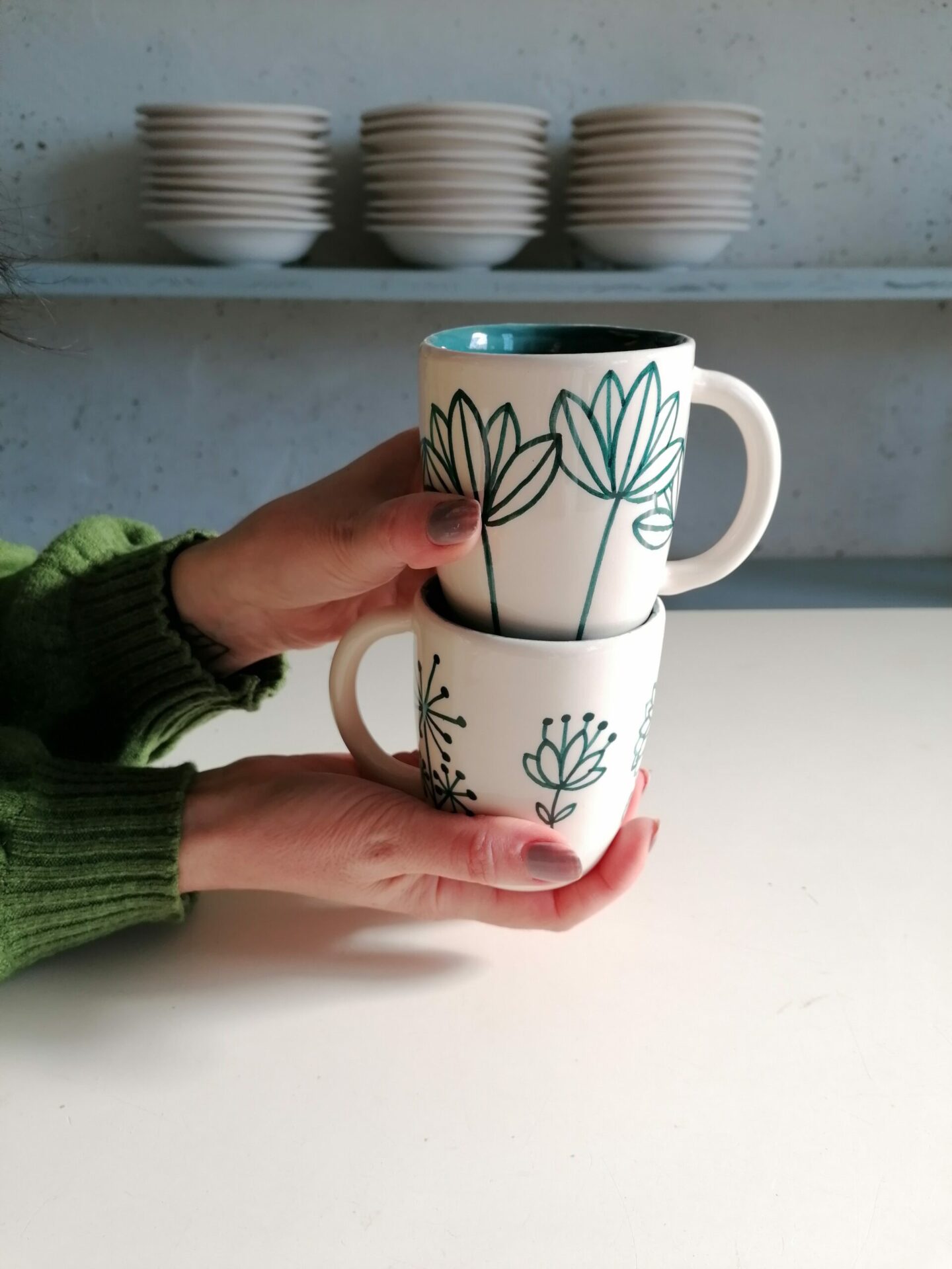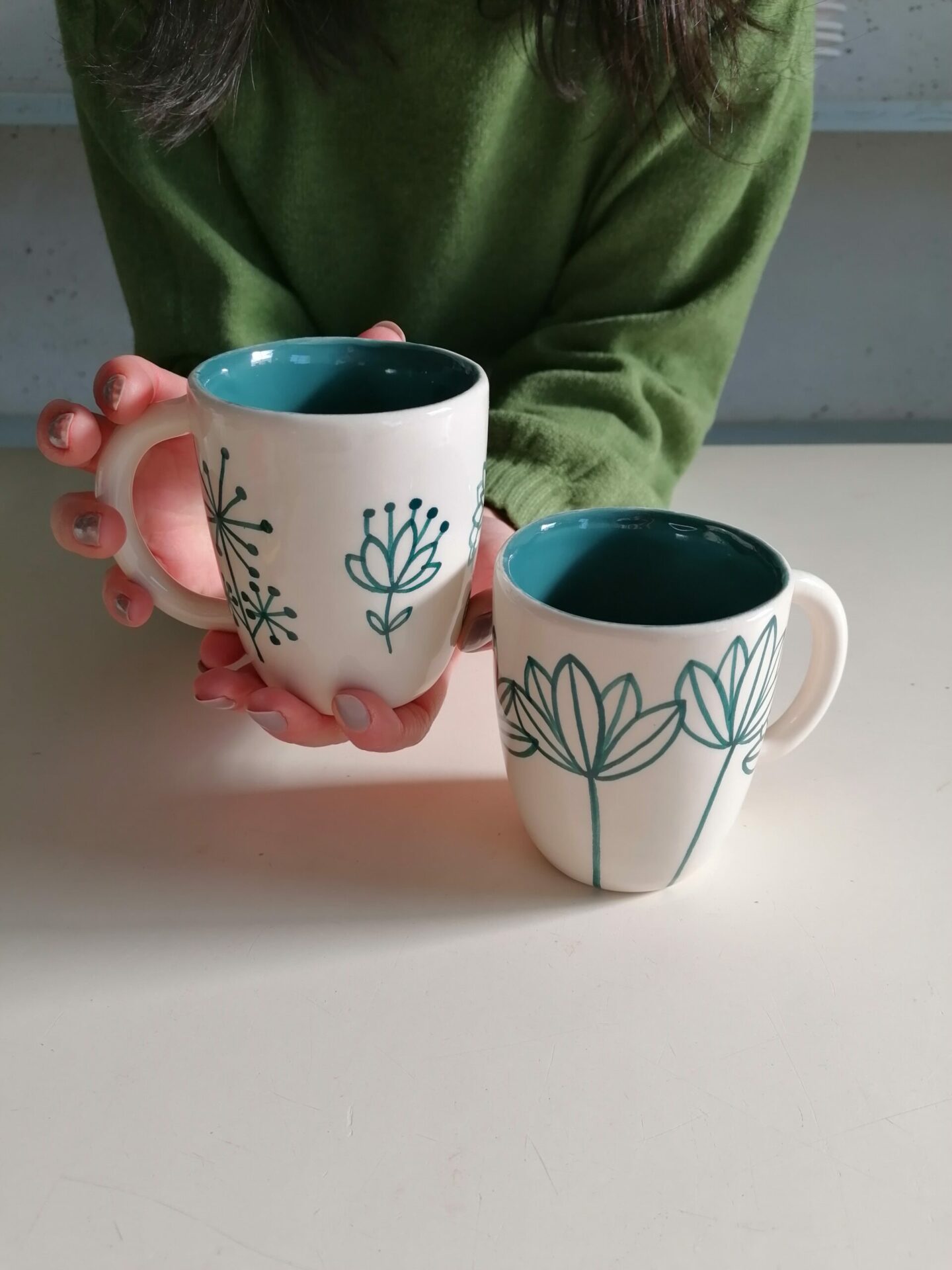• Tazza in ceramica realizzata e decorata a mano, in argilla bianca