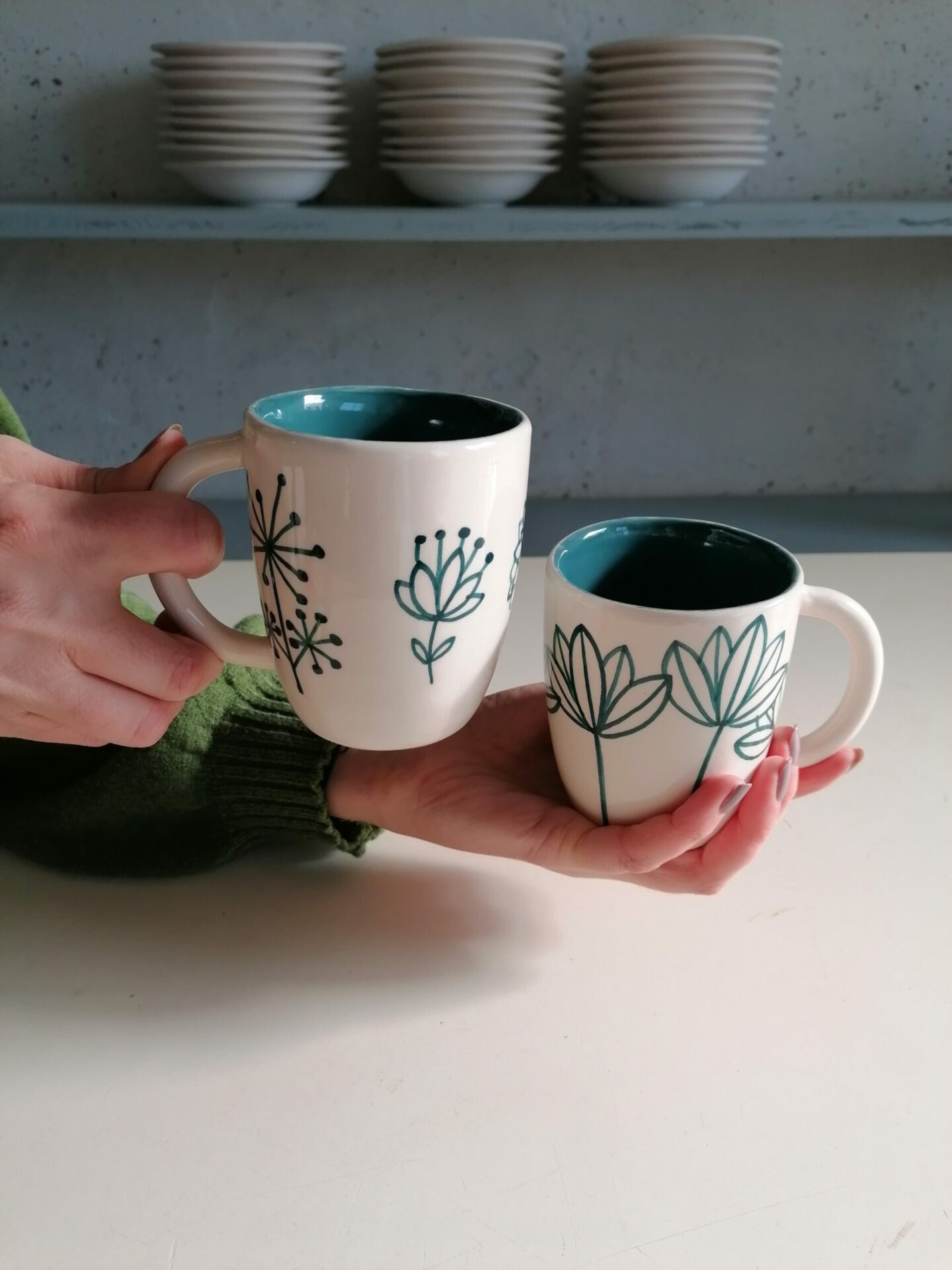 Tazza da colazione interamente prodotta e decorata a mano.