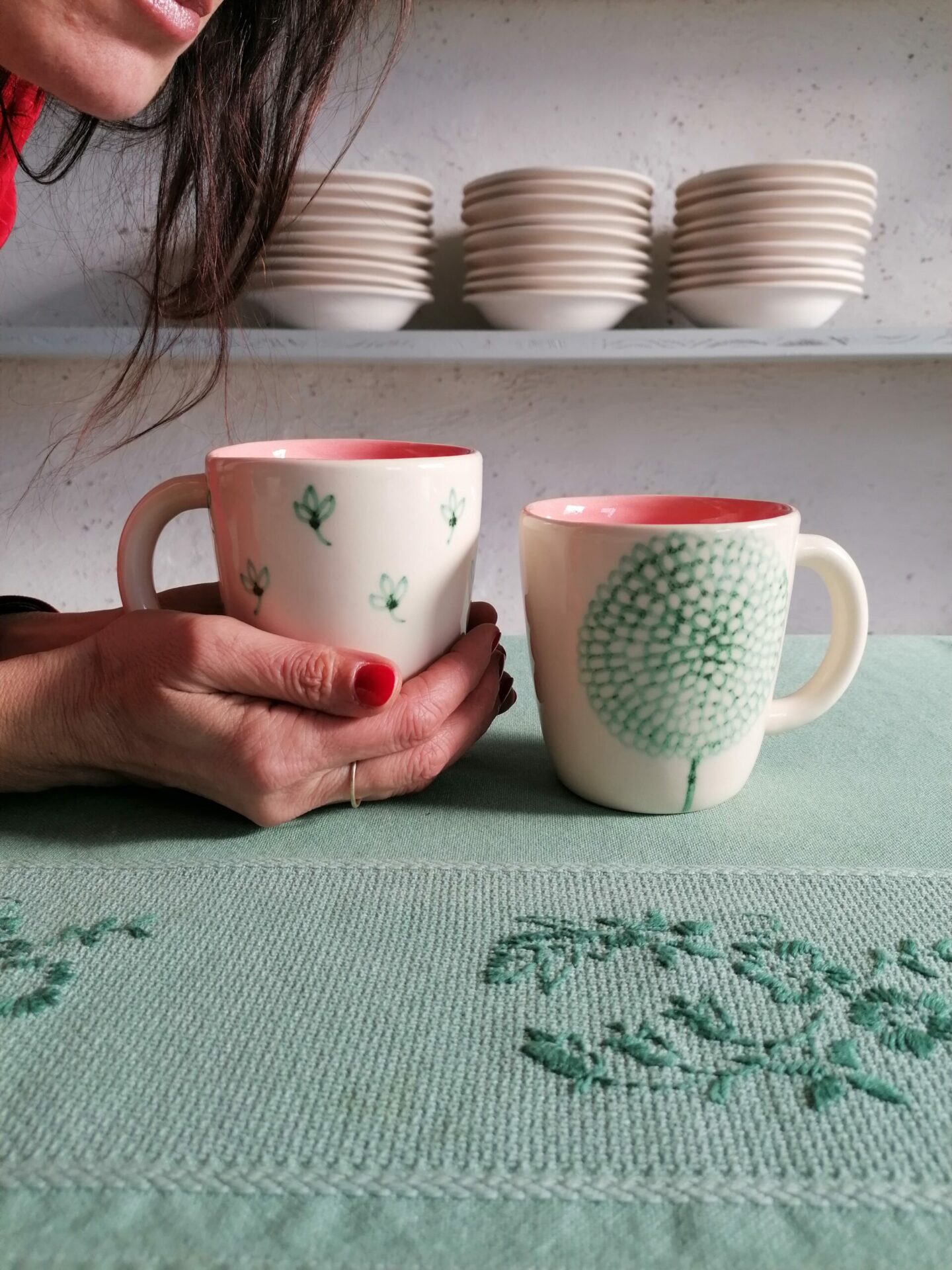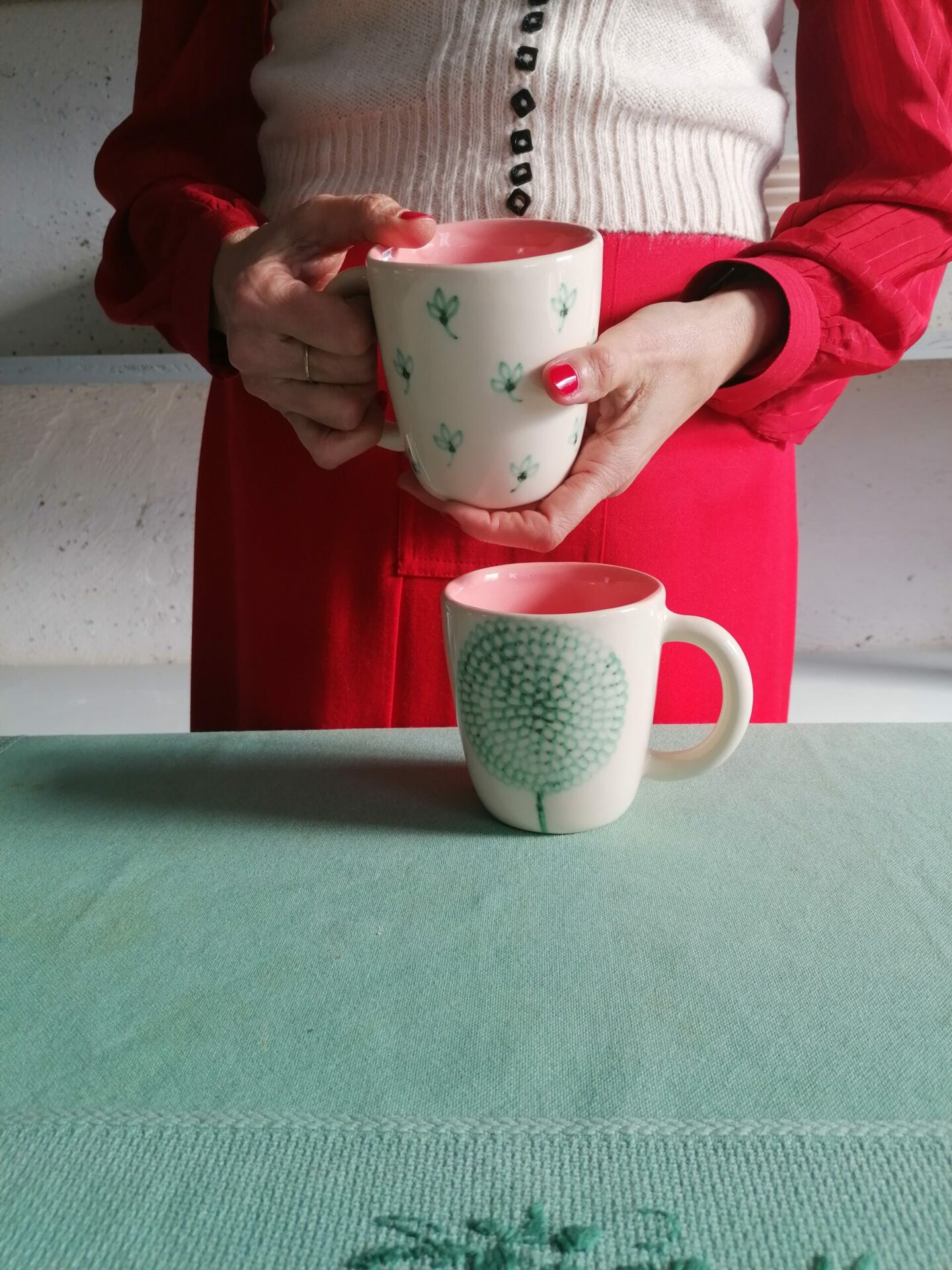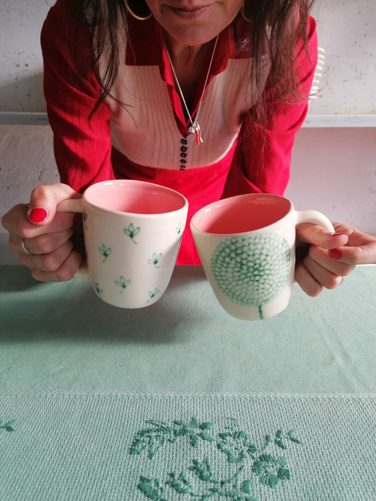 • Tazza in ceramica realizzata e decorata a mano, in argilla bianca