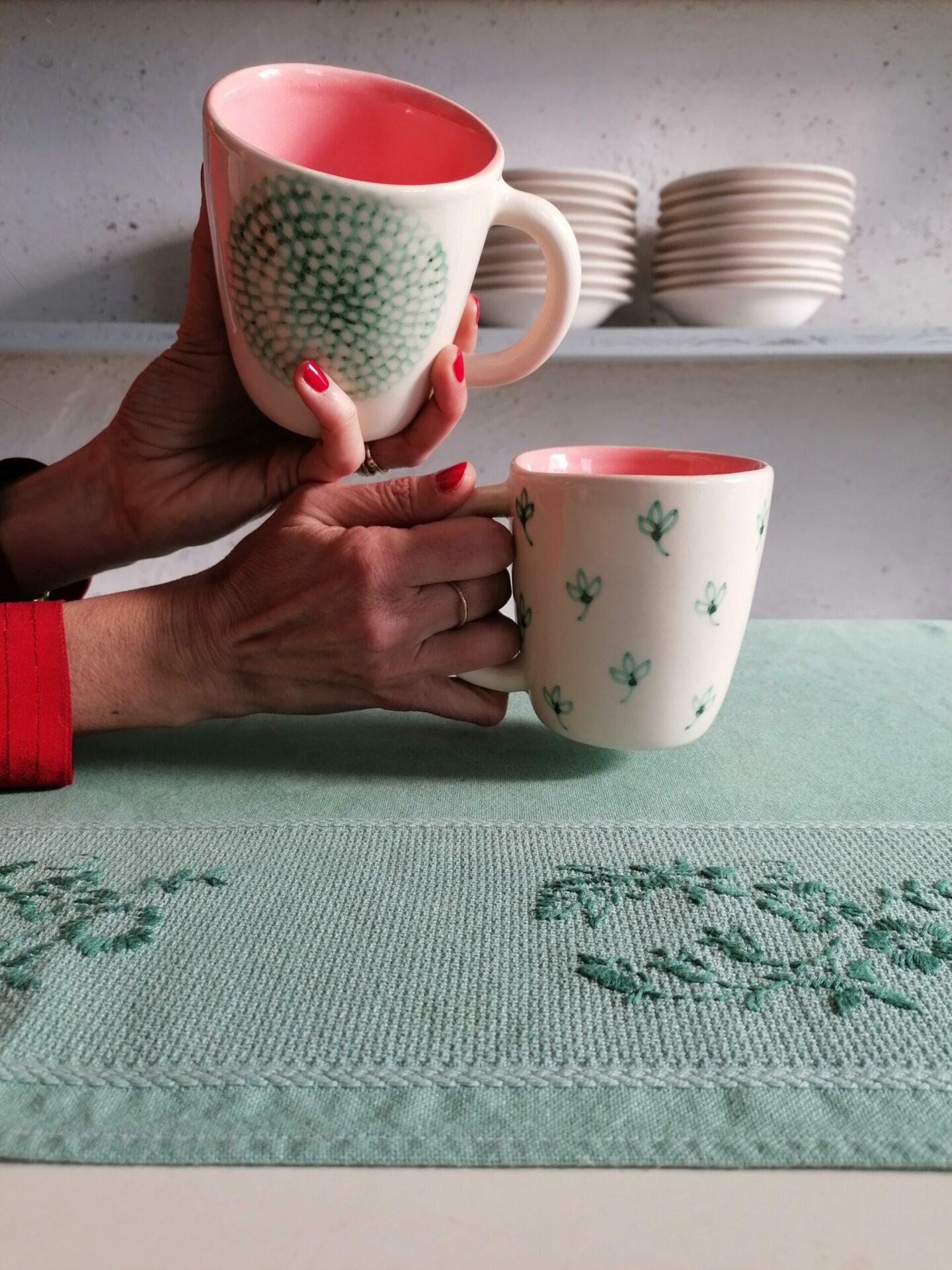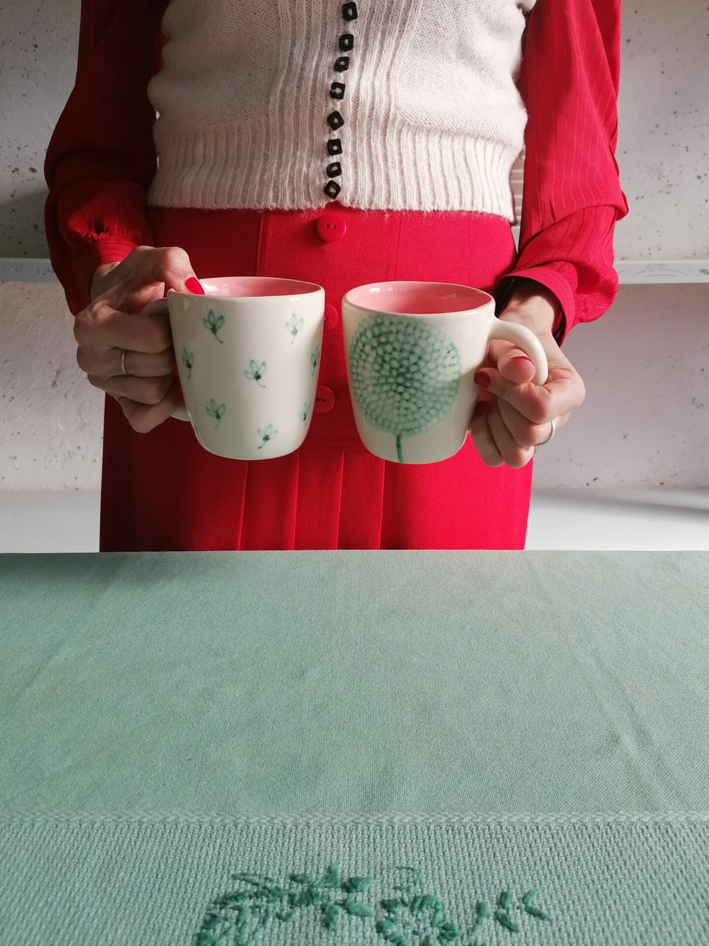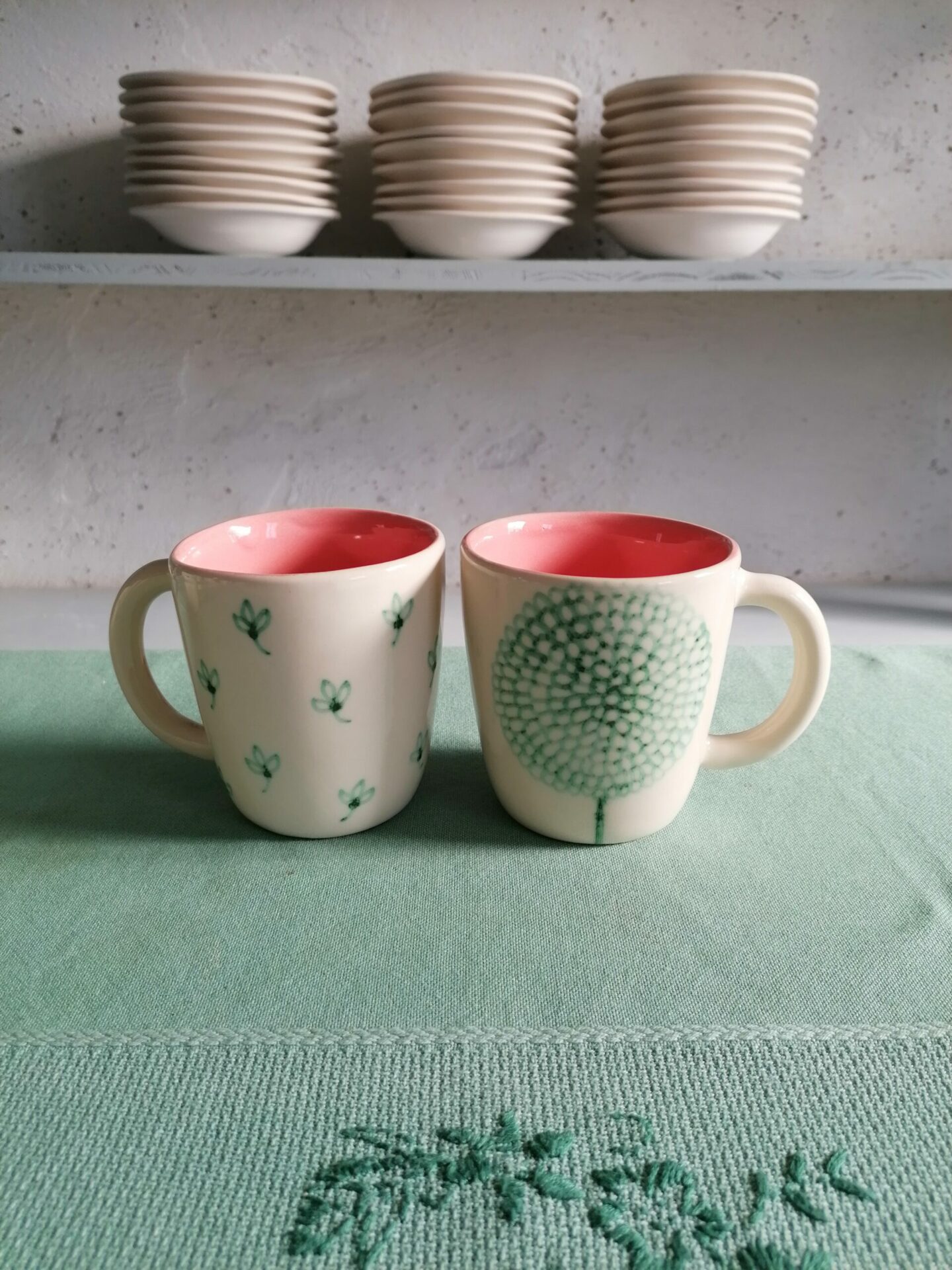 • Tazza in ceramica realizzata e decorata a mano, in argilla bianca