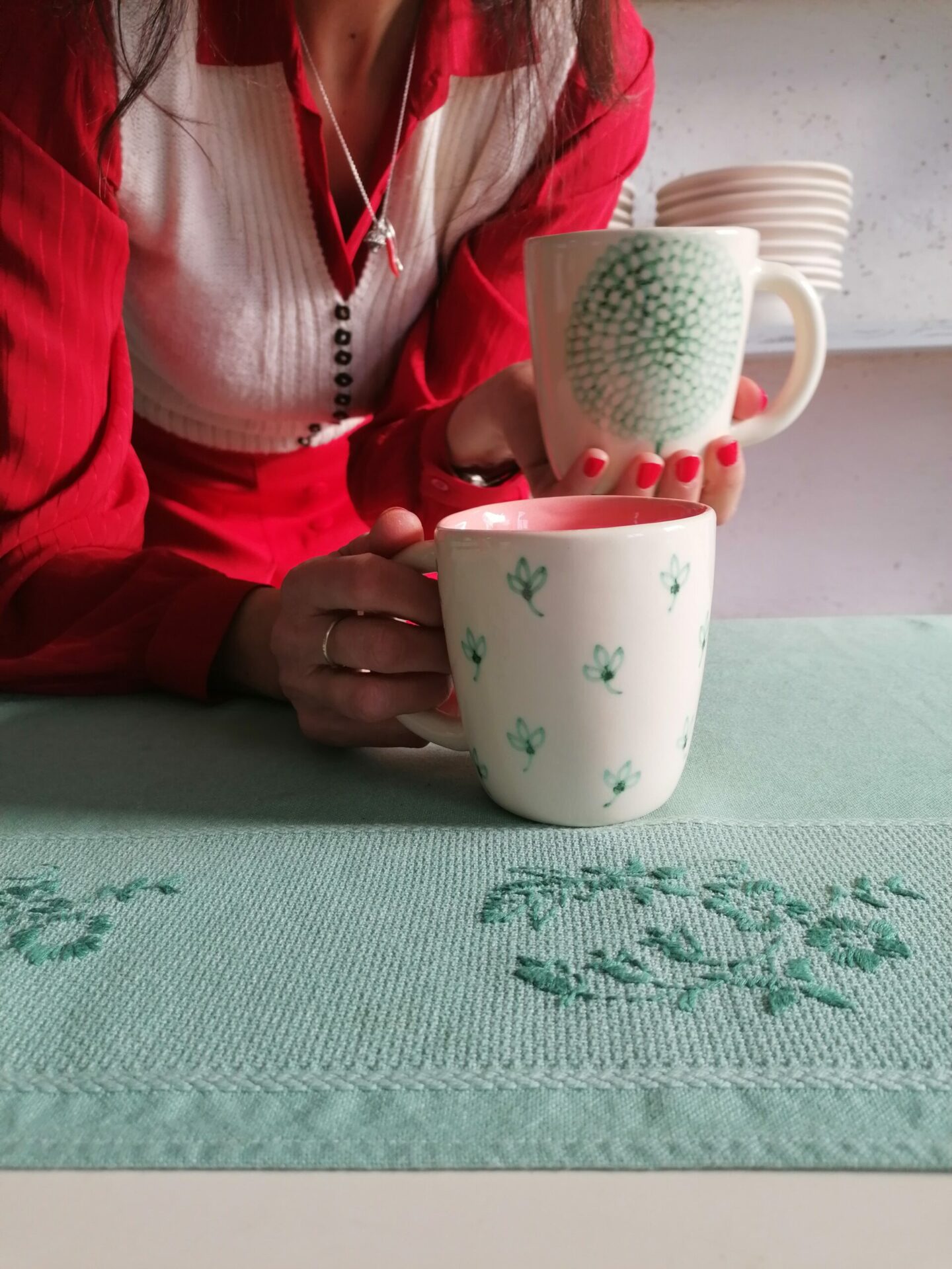 Tazza da colazione interamente prodotta e decorata a mano.