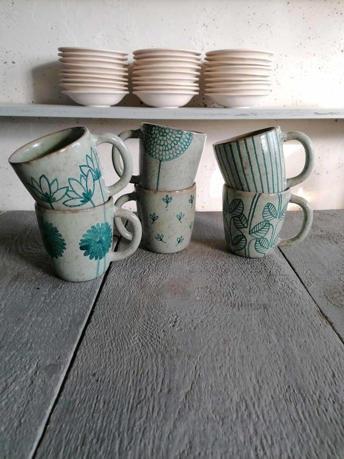 Tazza da colazione interamente prodotta e decorata a mano.