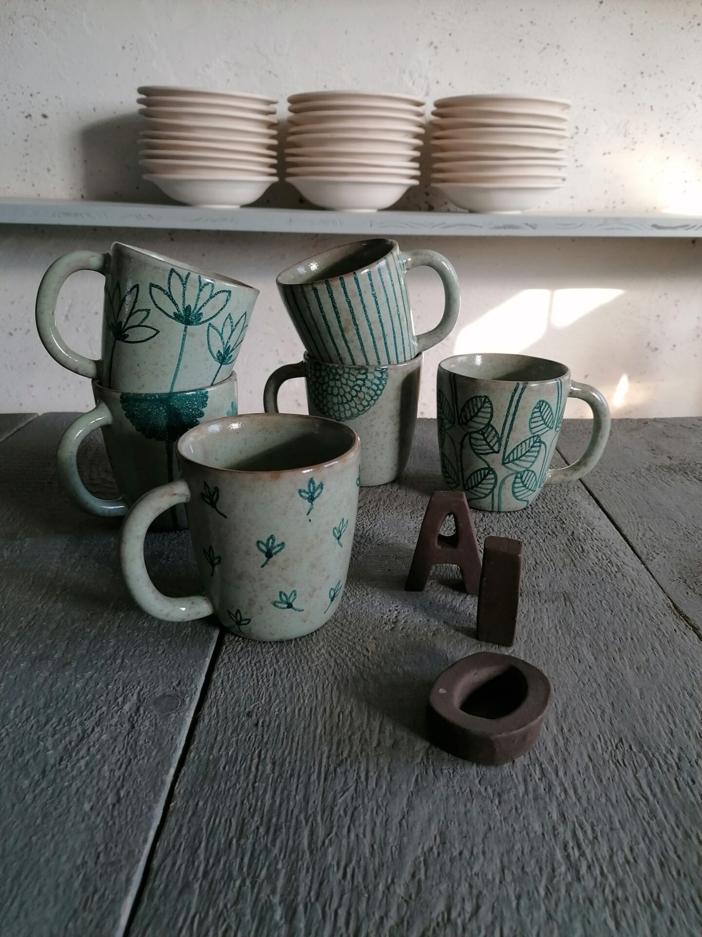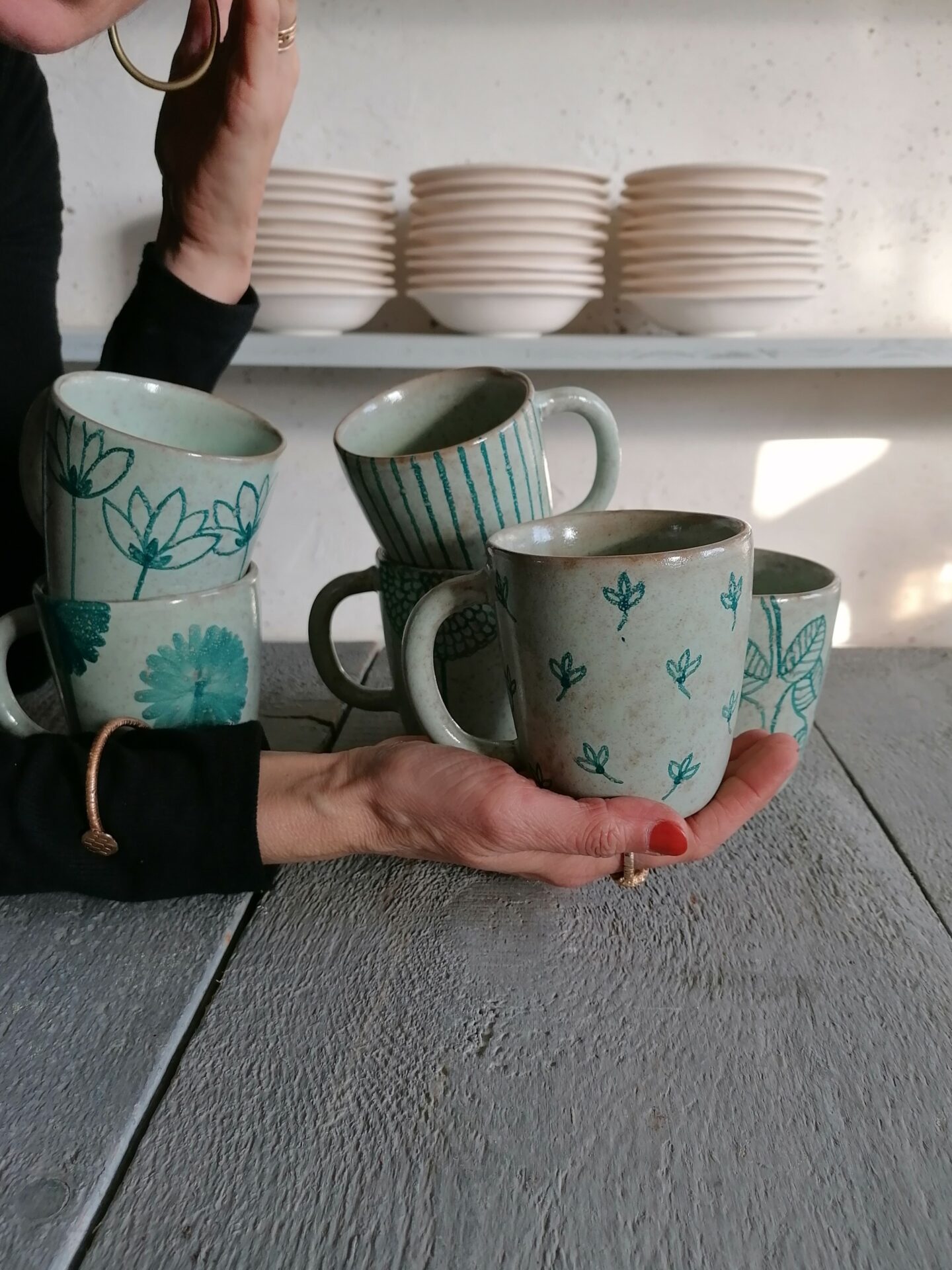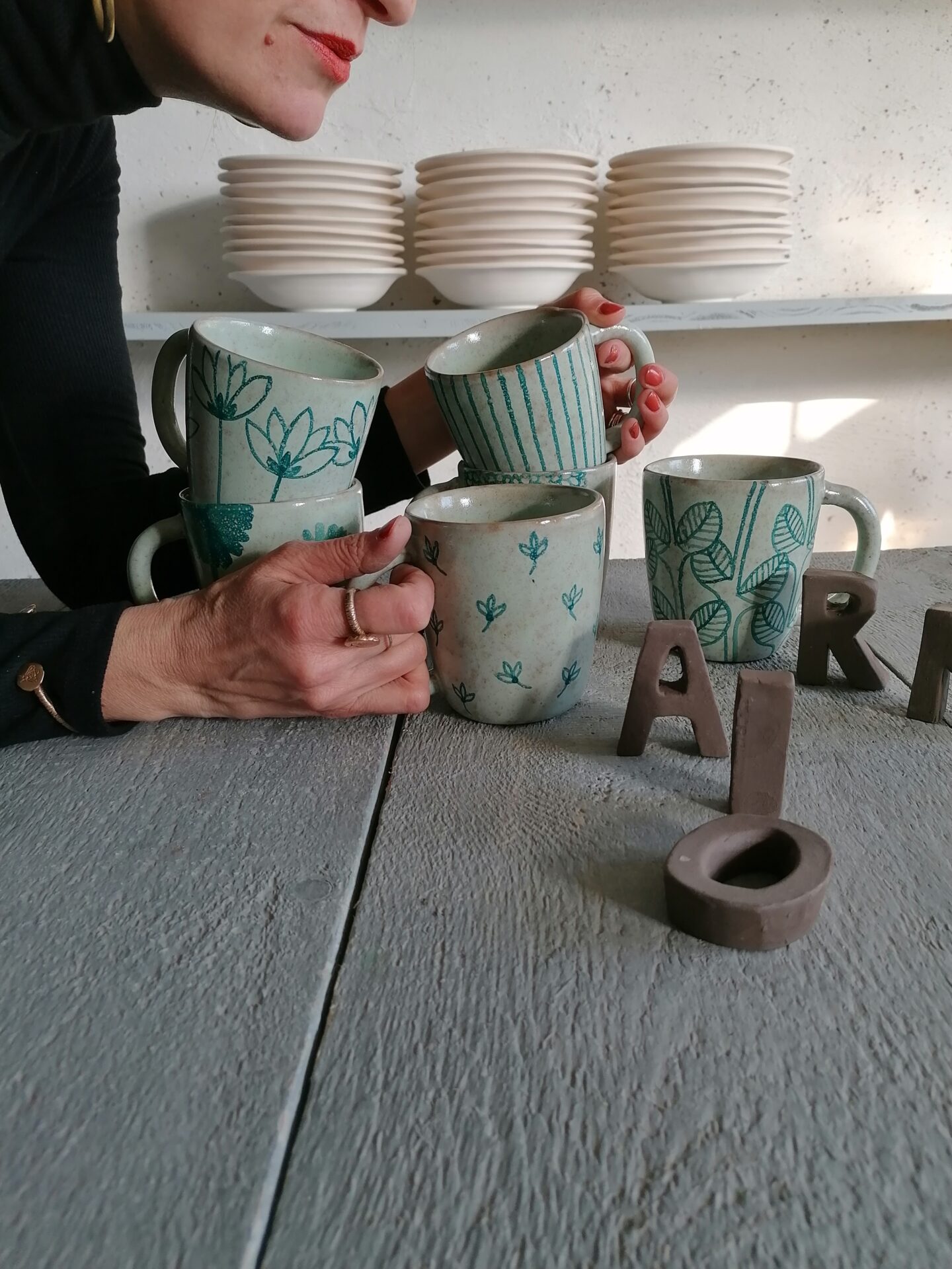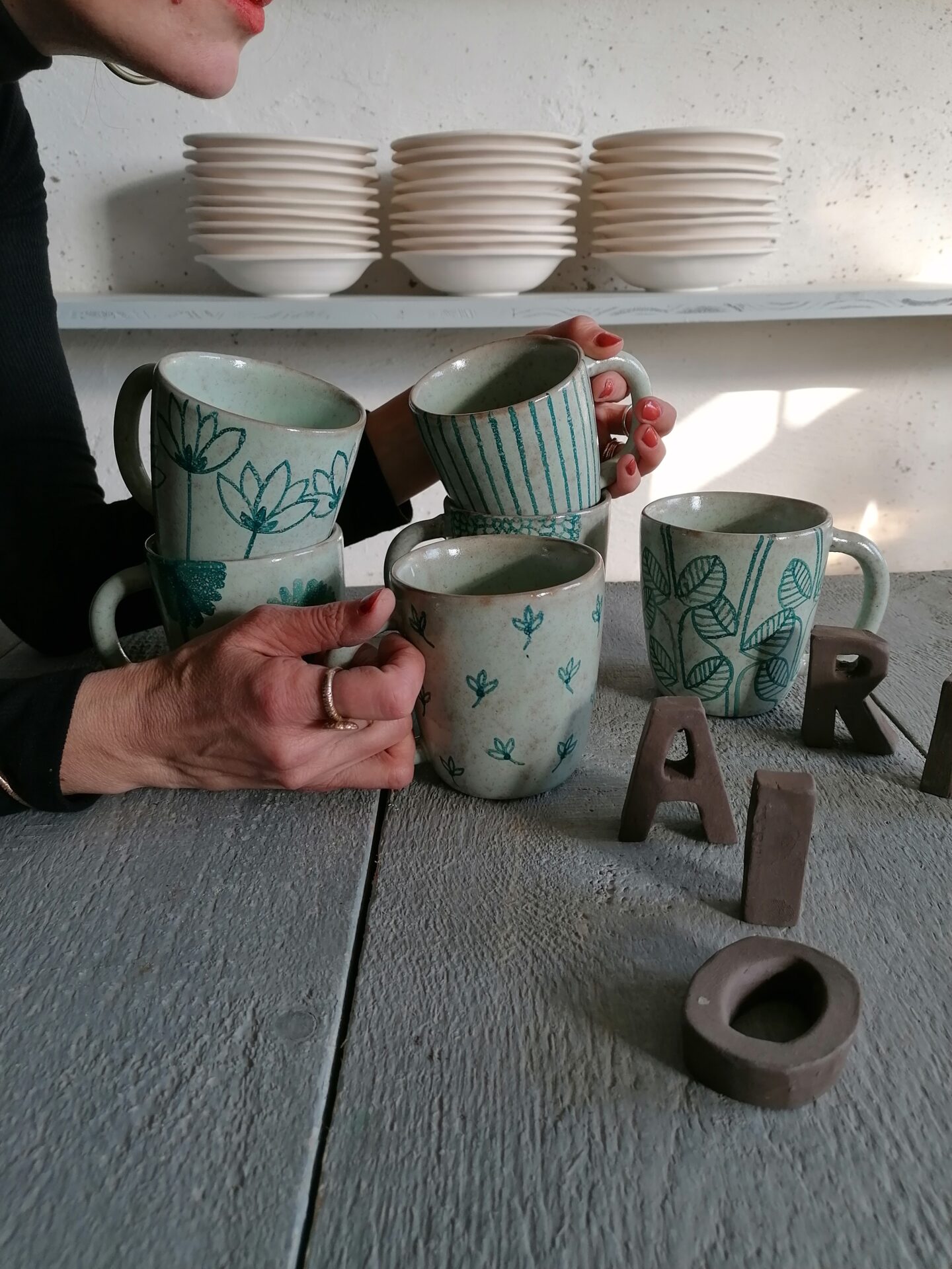 Nella collezione Fluida un colore liquido, appunto fluido, esalta la terracotta sottostante e fa muovere i decori rendendo, ogni volta, una sorpresa l’oggetto che esce dal forno.