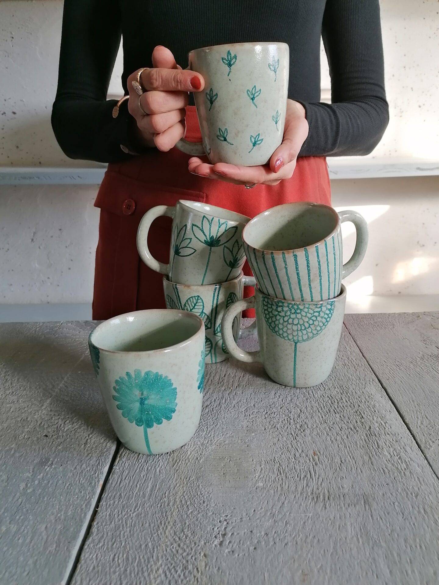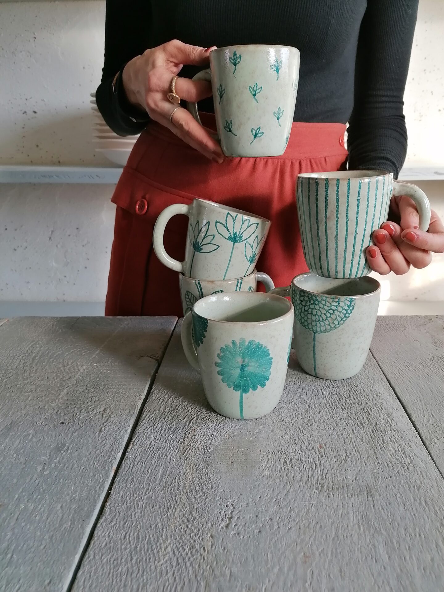 • Tazza in ceramica realizzata e decorata a mano, in argilla rossa