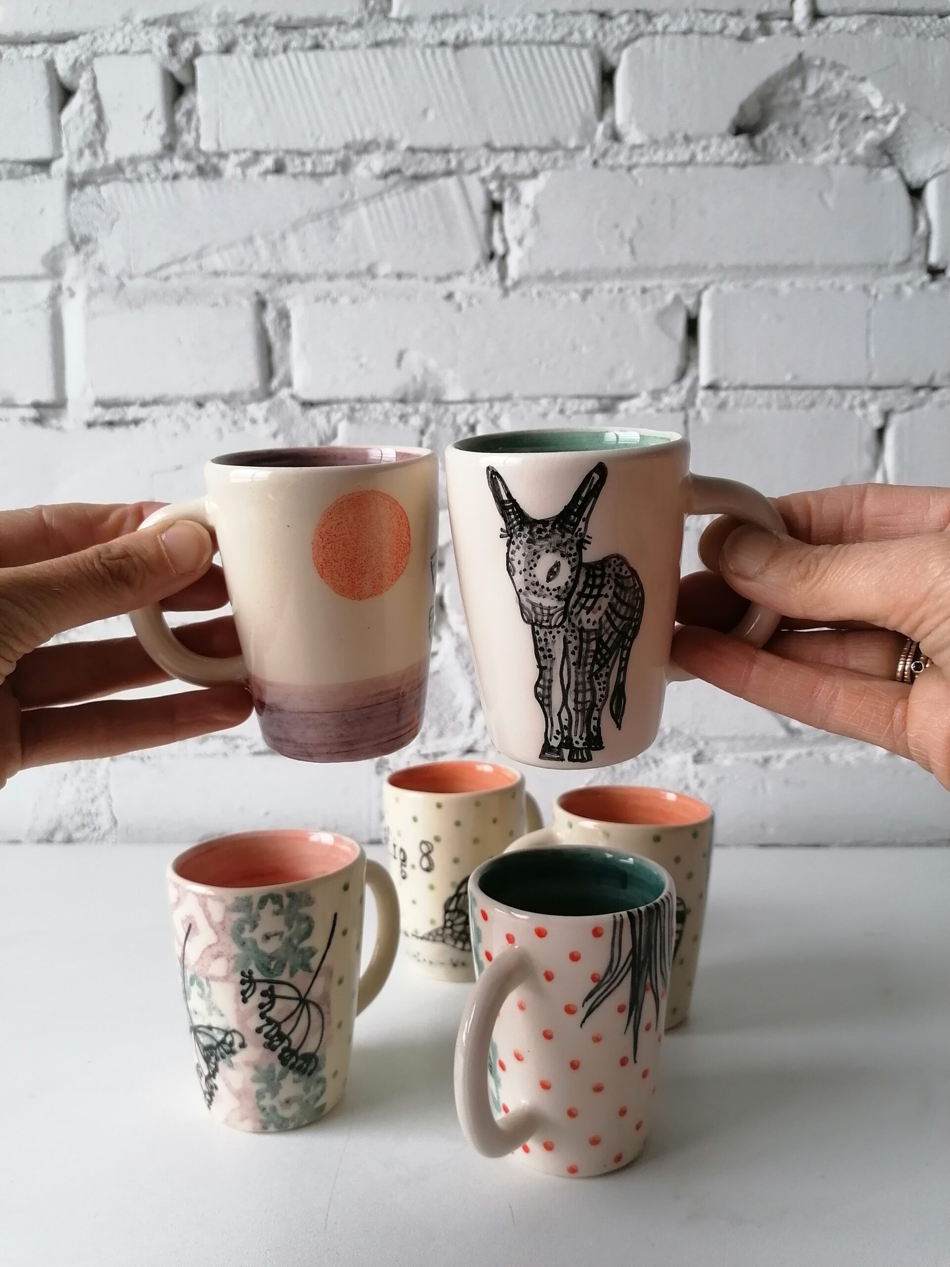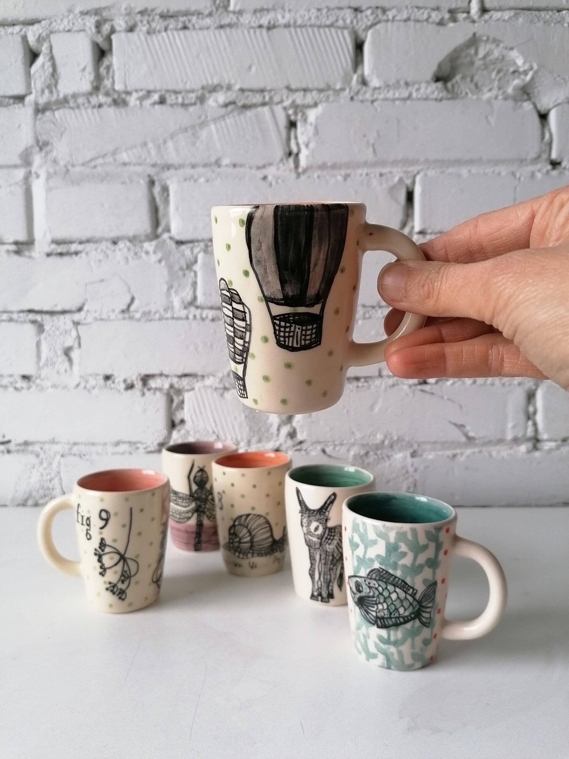Tazzina in ceramica realizzata e decorata a mano, in argilla bianca