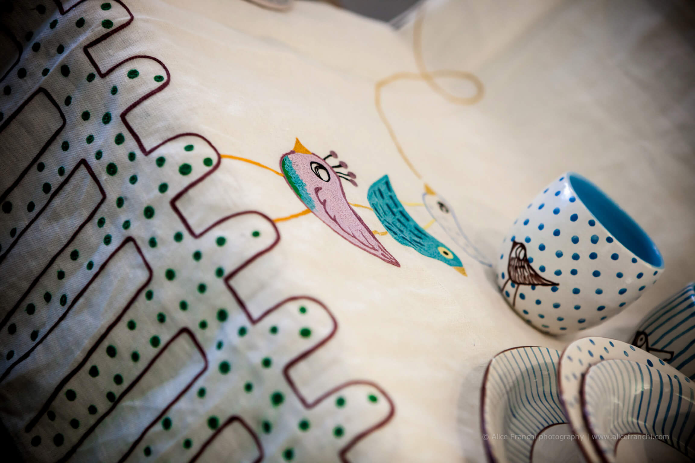 Nasce dall’esigenza di raccontare la mia maternità, un racconto a episodi analitico cucito su una serie di formelle. Inizia con l’Annunciazione da parte dell’uccellino Pio Pio, segue in Lucciola il racconto dei primi giorni di mio figlio Lucio dentro l’ incubatrice a caricarsi per la grande uscita…