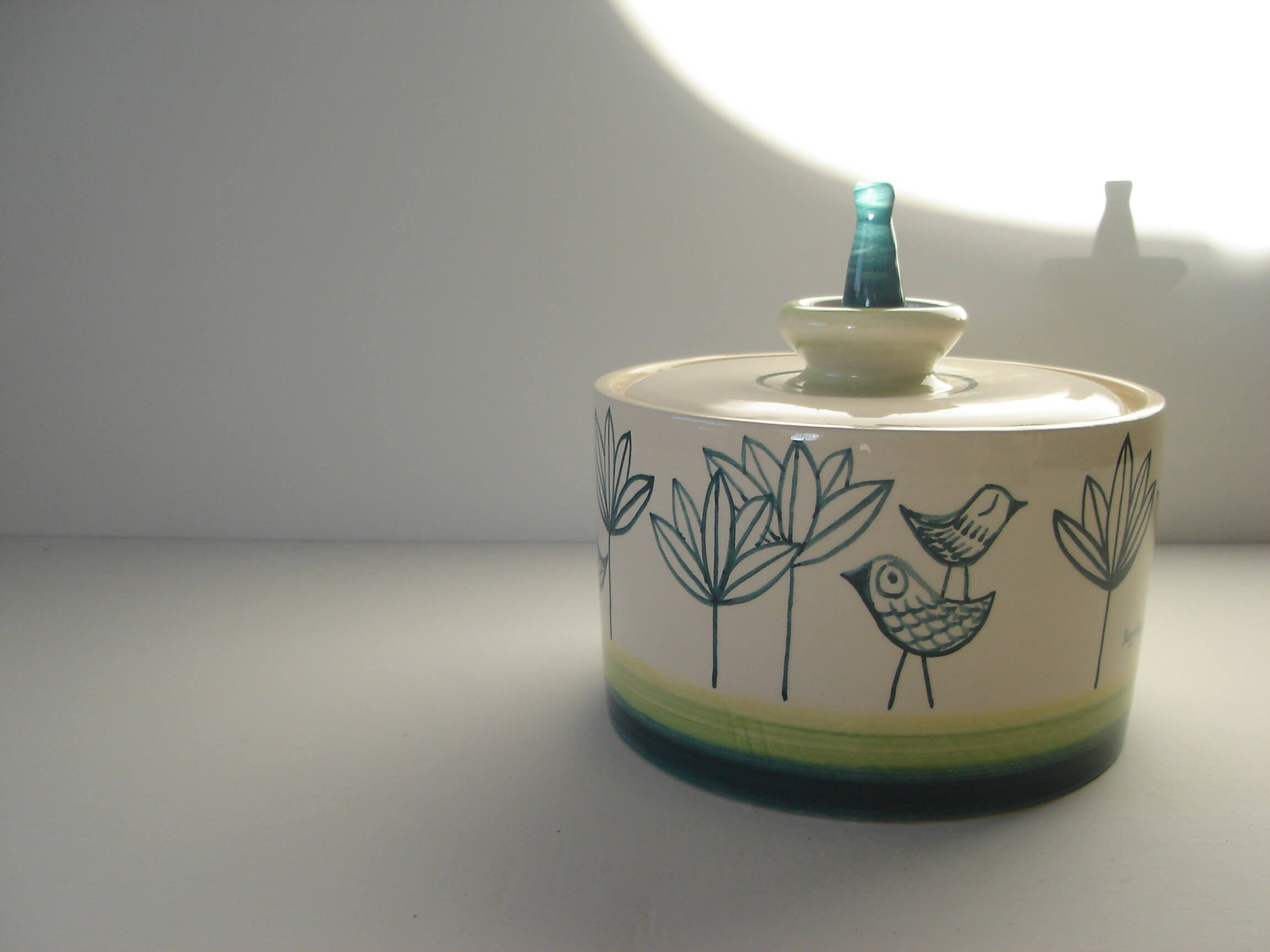 Burriere in ceramica con decorazioni e colori vivaci, capaci di rendere la tavola più allegra e originale.