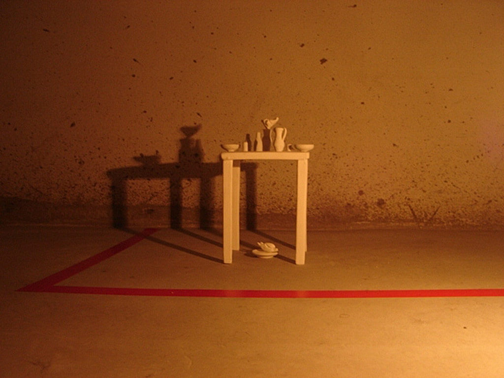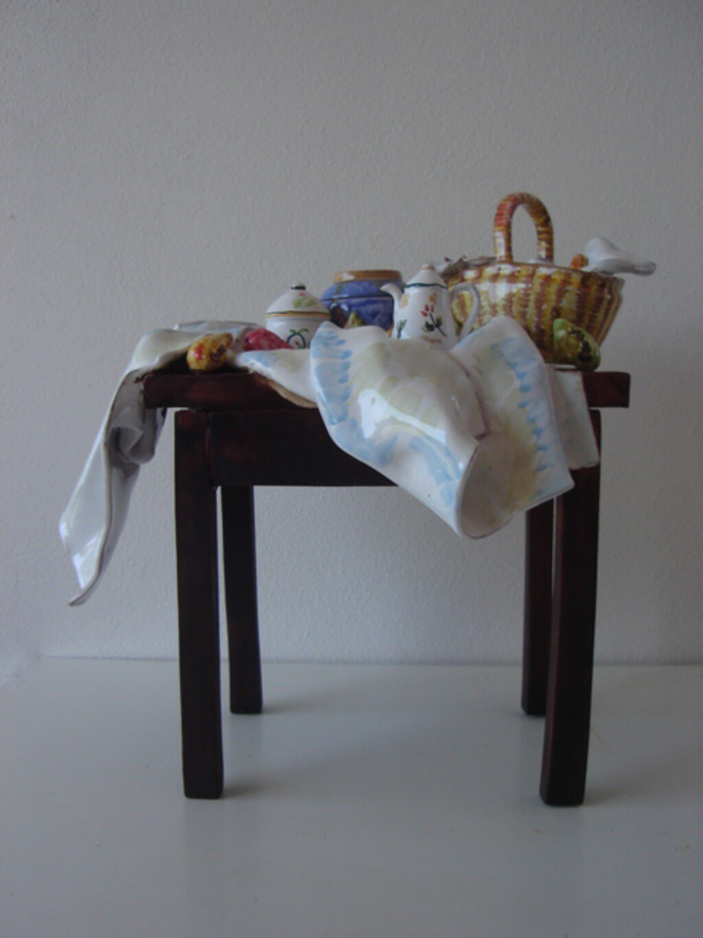 Una scultura che rappresenta la realtà di tutti i giorni, la tavola apparrecchiata, ma se ne discosta per le sue insolite proporzioni (cm 20 x 10) e per il suo candore metafisico.